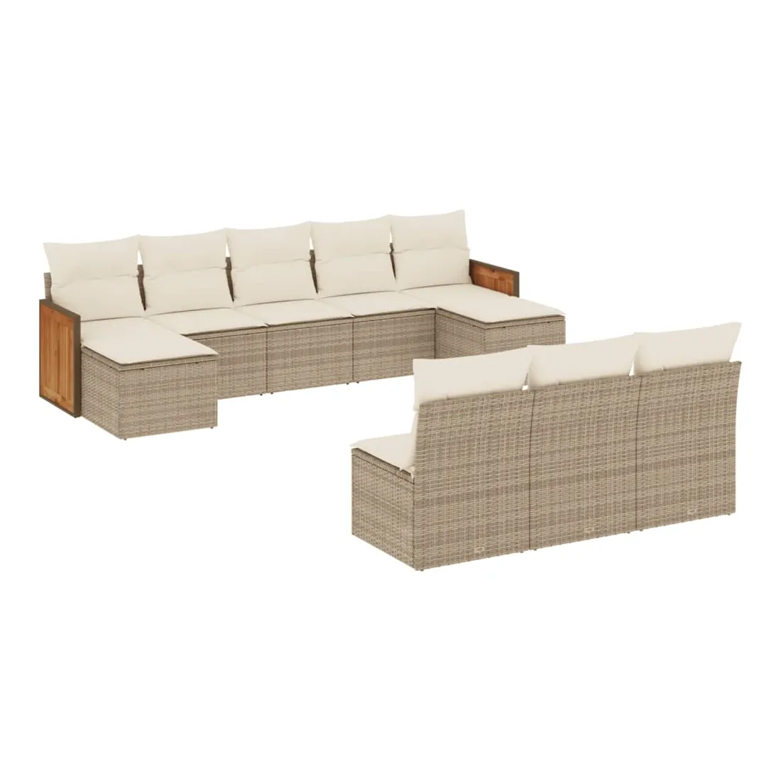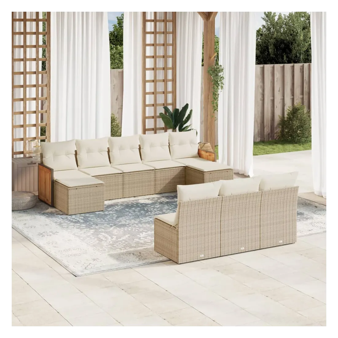 Cet ensemble de canapés de jardin est le complément parfait de votre arrière-cour, terrasse ou patio, offrant un espace confortable et accueillant pour discuter avec la famille et les amis ou simplement se détendre et profiter de l'extérieur. Matériau durable : la résine tressée, également connue sous le nom de poly rotin, est un matériau synthétique solide et nécessitant peu d'entretien qui ressemble au rotin naturel. Il est léger, facile à nettoyer et couramment utilisé pour les meubles d'extérieur en raison de sa durabilité et de ses propriétés de résistance aux intempéries.Expérience d'assise confortable : ce mobilier d'extérieur, doté de coussins épais, offre une expérience d'assise confortable.Housse amovible et lavable : ces coussins de siège sont dotés de housses amovibles pour un lavage et un entretien faciles.Conception modulaire : cet ensemble de meubles d'extérieur a une conception modulaire, ce qui le rend complètement flexible et facile à déplacer, afin que vous puissiez créer un agencement de meubles d'extérieur personnalisé. Bon à savoir :Pour que vos meubles d'extérieur restent beaux, nous vous recommandons de les protéger avec une housse imperméable.