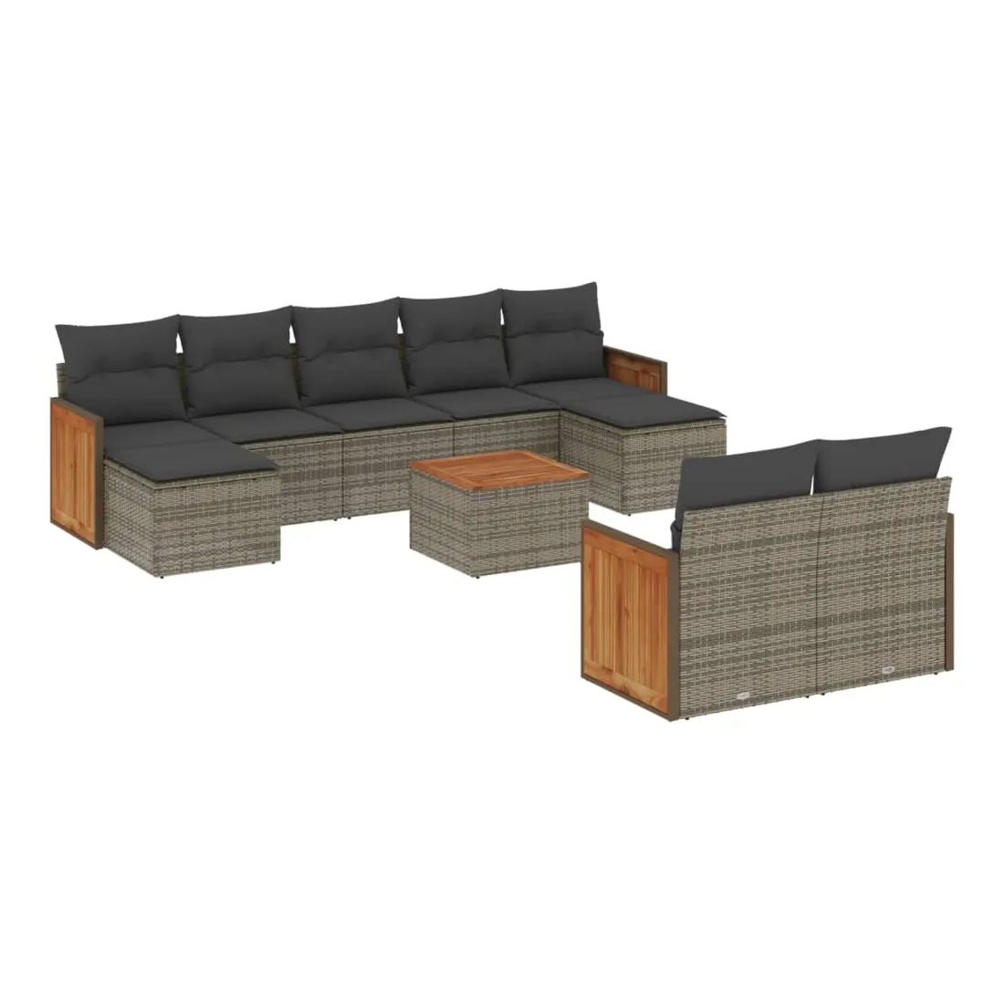 Cet ensemble de canapés de jardin est le complément parfait de votre arrière-cour, terrasse ou patio, offrant un espace confortable et accueillant pour discuter avec la famille et les amis ou simplement se détendre et profiter de l'extérieur. Matériau durable : la résine tressée, également connue sous le nom de poly rotin, est un matériau synthétique solide et nécessitant peu d'entretien qui ressemble au rotin naturel. Il est léger, facile à nettoyer et couramment utilisé pour les meubles d'extérieur en raison de sa durabilité et de ses propriétés de résistance aux intempéries.Expérience d'assise confortable : ce mobilier d'extérieur, doté de coussins épais, offre une expérience d'assise confortable.Dessus stable et facile à nettoyer : cette table de jardin a un dessus en bois d'acacia robuste, durable et facile à nettoyer avec un chiffon humide.Housse amovible et lavable : ces coussins de siège sont dotés de housses amovibles pour un lavage et un entretien faciles.Conception modulaire : cet ensemble de meubles d'extérieur a une conception modulaire, ce qui le rend complètement flexible et facile à déplacer, afin que vous puissiez créer un agencement de meubles d'extérieur personnalisé. Bon à savoir :Pour que vos meubles d'extérieur restent beaux, nous vous recommandons de les protéger avec une housse imperméable.