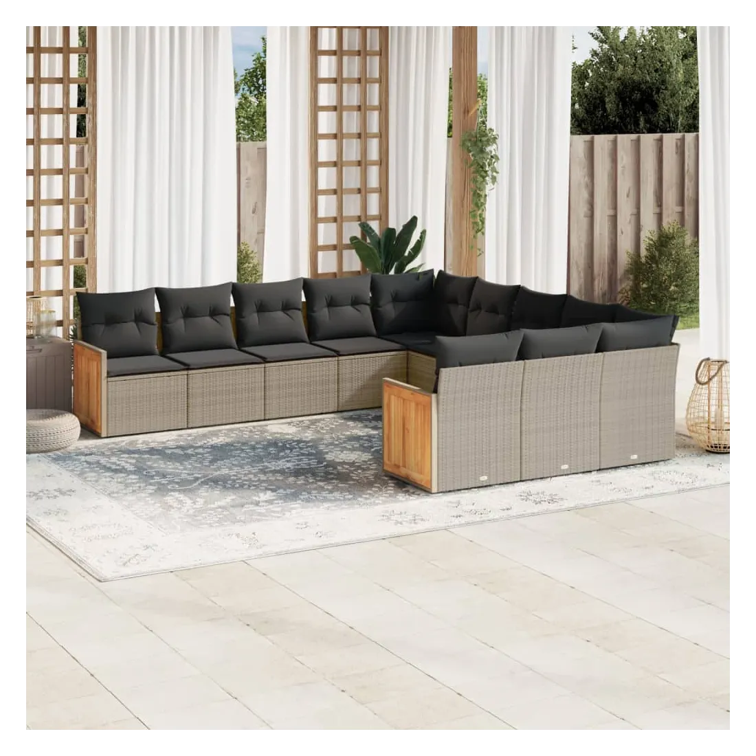 Cet ensemble de canapés de jardin est le complément parfait de votre arrière-cour, terrasse ou patio, offrant un espace confortable et accueillant pour discuter avec la famille et les amis ou simplement se détendre et profiter de l'extérieur. Matériau durable : la résine tressée, également connue sous le nom de poly rotin, est un matériau synthétique solide et nécessitant peu d'entretien qui ressemble au rotin naturel. Il est léger, facile à nettoyer et couramment utilisé pour les meubles d'extérieur en raison de sa durabilité et de ses propriétés de résistance aux intempéries.Expérience d'assise confortable : ce mobilier d'extérieur, doté de coussins épais, offre une expérience d'assise confortable.Housse amovible et lavable : ces coussins de siège sont dotés de housses amovibles pour un lavage et un entretien faciles.Conception modulaire : cet ensemble de meubles d'extérieur a une conception modulaire, ce qui le rend complètement flexible et facile à déplacer, afin que vous puissiez créer un agencement de meubles d'extérieur personnalisé. Bon à savoir :Pour que vos meubles d'extérieur restent beaux, nous vous recommandons de les protéger avec une housse imperméable.