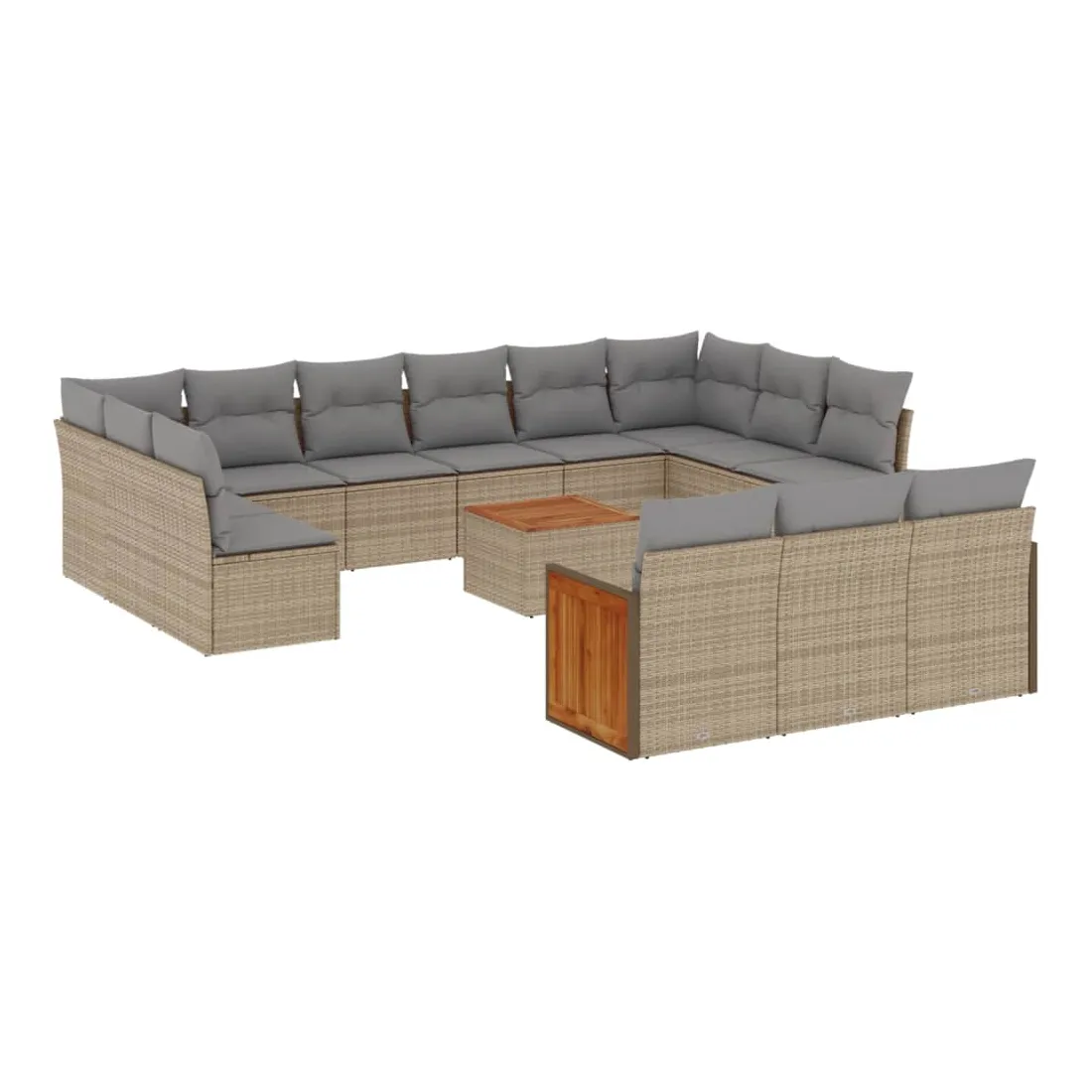Cet ensemble de canapés de jardin est le complément parfait de votre arrière-cour, terrasse ou patio, offrant un espace confortable et accueillant pour discuter avec la famille et les amis ou simplement se détendre et profiter de l'extérieur. Matériau durable : la résine tressée, également connue sous le nom de poly rotin, est un matériau synthétique solide et nécessitant peu d'entretien qui ressemble au rotin naturel. Il est léger, facile à nettoyer et couramment utilisé pour les meubles d'extérieur en raison de sa durabilité et de ses propriétés de résistance aux intempéries.Expérience d'assise confortable : ce mobilier d'extérieur, doté de coussins épais, offre une expérience d'assise confortable.Dessus stable et facile à nettoyer : cette table de jardin a un dessus en bois d'acacia robuste, durable et facile à nettoyer avec un chiffon humide.Housse amovible et lavable : ces coussins de siège sont dotés de housses amovibles pour un lavage et un entretien faciles.Conception modulaire : cet ensemble de meubles d'extérieur a une conception modulaire, ce qui le rend complètement flexible et facile à déplacer, afin que vous puissiez créer un agencement de meubles d'extérieur personnalisé. Bon à savoir :Pour que vos meubles d'extérieur restent beaux, nous vous recommandons de les protéger avec une housse imperméable.