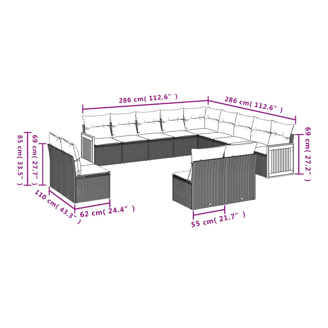 - Dimensions du coussin de dossier : 55 x 45 x 13 cm (L x l x é)