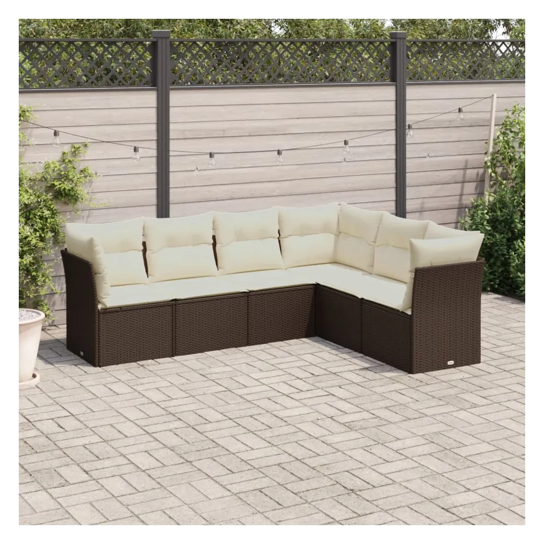 Cet ensemble de canapés de jardin est le complément parfait de votre arrière-cour, terrasse ou patio, offrant un espace confortable et accueillant pour discuter avec la famille et les amis ou simplement se détendre et profiter de l'extérieur. Matériau durable : la résine tressée, également connue sous le nom de poly rotin, est un matériau synthétique solide et nécessitant peu d'entretien qui ressemble au rotin naturel. Il est léger, facile à nettoyer et couramment utilisé pour les meubles d'extérieur en raison de sa durabilité et de ses propriétés de résistance aux intempéries.Fonction de rangement avec sac résistant à l'eau : chaque siège de jardin dispose d'un espace de rangement sous l'assise, complété par un sac résistant à l'eau pour ranger les coussins, les jouets et d'autres objets. Les sacs intérieurs sont dotés d'un couvercle et peuvent être solidement fixés aux sièges à l'aide de bandes auto-agrippantes pour plus de stabilité.Housse amovible et lavable : ces coussins de siège sont dotés de housses amovibles pour un lavage et un entretien faciles.Conception modulaire : cet ensemble de meubles d'extérieur a une conception modulaire, ce qui le rend complètement flexible et facile à déplacer, afin que vous puissiez créer un agencement de meubles d'extérieur personnalisé. Bon à savoir :Pour que vos meubles d'extérieur restent beaux, nous vous recommandons de les protéger avec une housse imperméable.