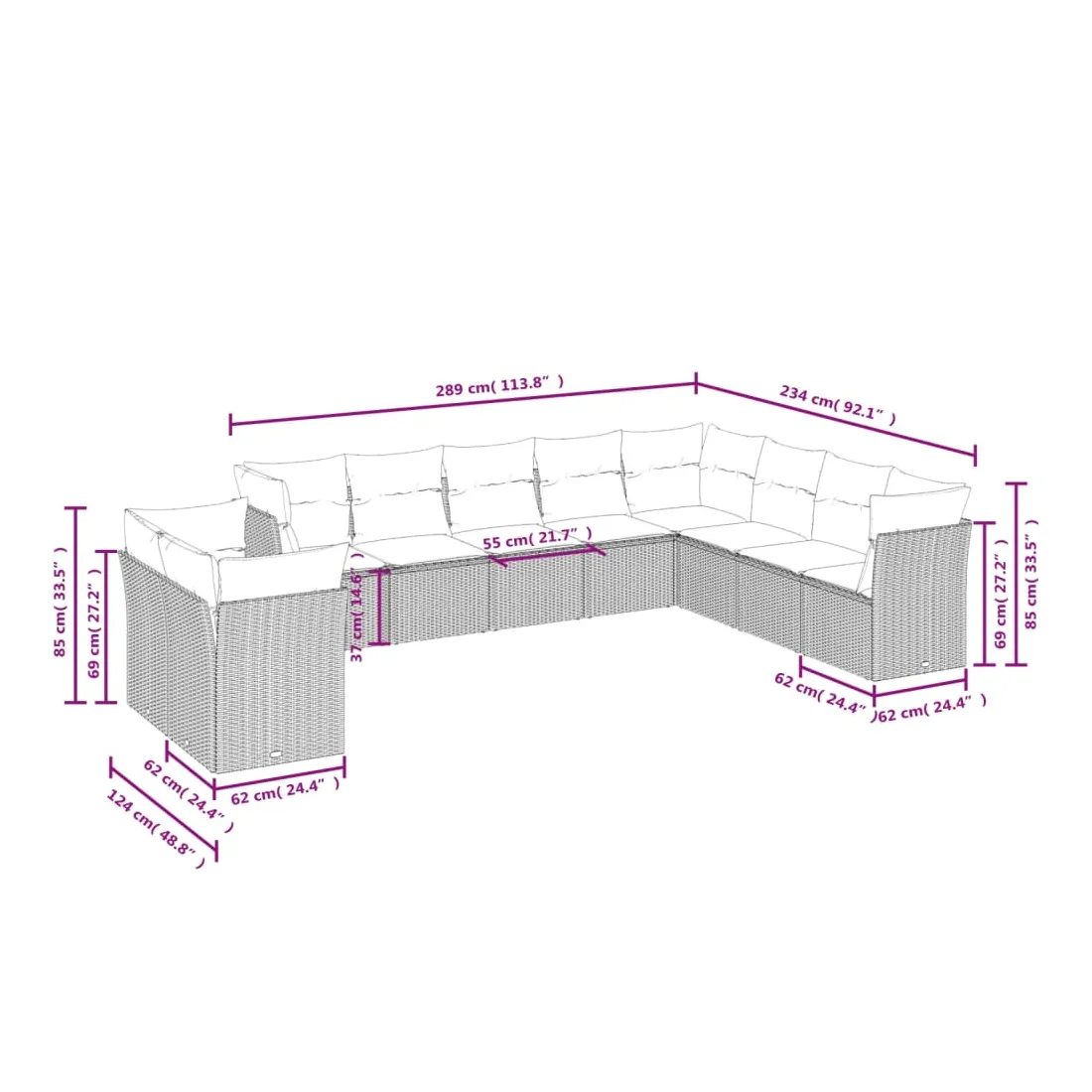 - Dimensions totales du canapé 8 places : 289 x 234 x 69 cm (l x P x H)
