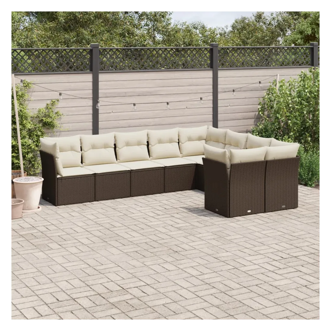 Salon de jardin avec coussins 9 pcs marron résine tressée