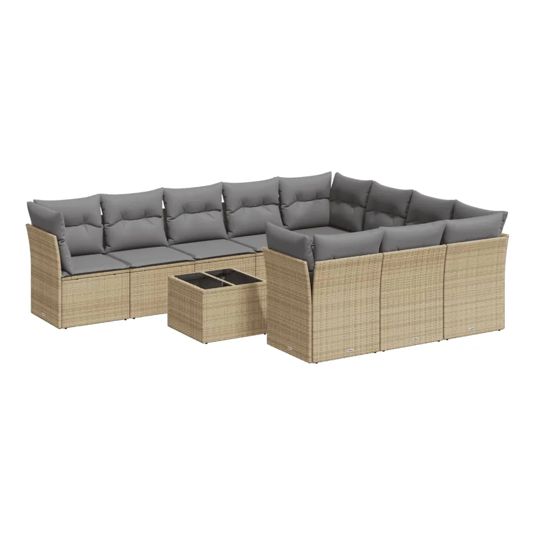 Salon de jardin 11 pcs avec coussins beige résine tressée
