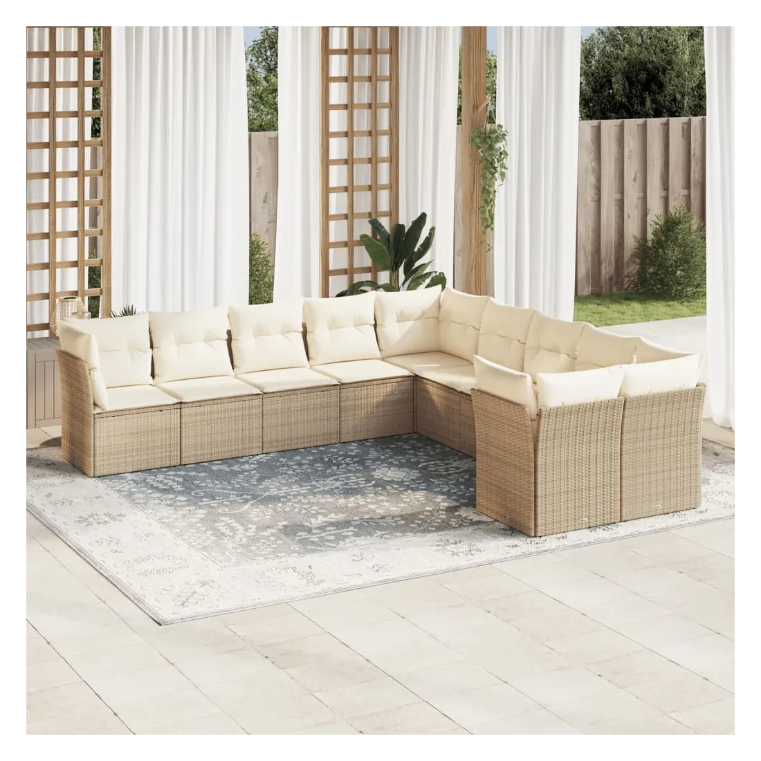 Cet ensemble de canapés de jardin est le complément parfait de votre arrière-cour, terrasse ou patio, offrant un espace confortable et accueillant pour discuter avec la famille et les amis ou simplement se détendre et profiter de l'extérieur. Matériau durable : la résine tressée, également connue sous le nom de poly rotin, est un matériau synthétique solide et nécessitant peu d'entretien qui ressemble au rotin naturel. Il est léger, facile à nettoyer et couramment utilisé pour les meubles d'extérieur en raison de sa durabilité et de ses propriétés de résistance aux intempéries.Fonction de rangement avec sac résistant à l'eau : chaque siège de jardin dispose d'un espace de rangement sous l'assise, complété par un sac résistant à l'eau pour ranger les coussins, les jouets et d'autres objets. Les sacs intérieurs sont dotés d'un couvercle et peuvent être solidement fixés aux sièges à l'aide de bandes auto-agrippantes pour plus de stabilité.Housse amovible et lavable : ces coussins de siège sont dotés de housses amovibles pour un lavage et un entretien faciles.Conception modulaire : cet ensemble de meubles d'extérieur a une conception modulaire, ce qui le rend complètement flexible et facile à déplacer, afin que vous puissiez créer un agencement de meubles d'extérieur personnalisé. Bon à savoir :Pour que vos meubles d'extérieur restent beaux, nous vous recommandons de les protéger avec une housse imperméable.