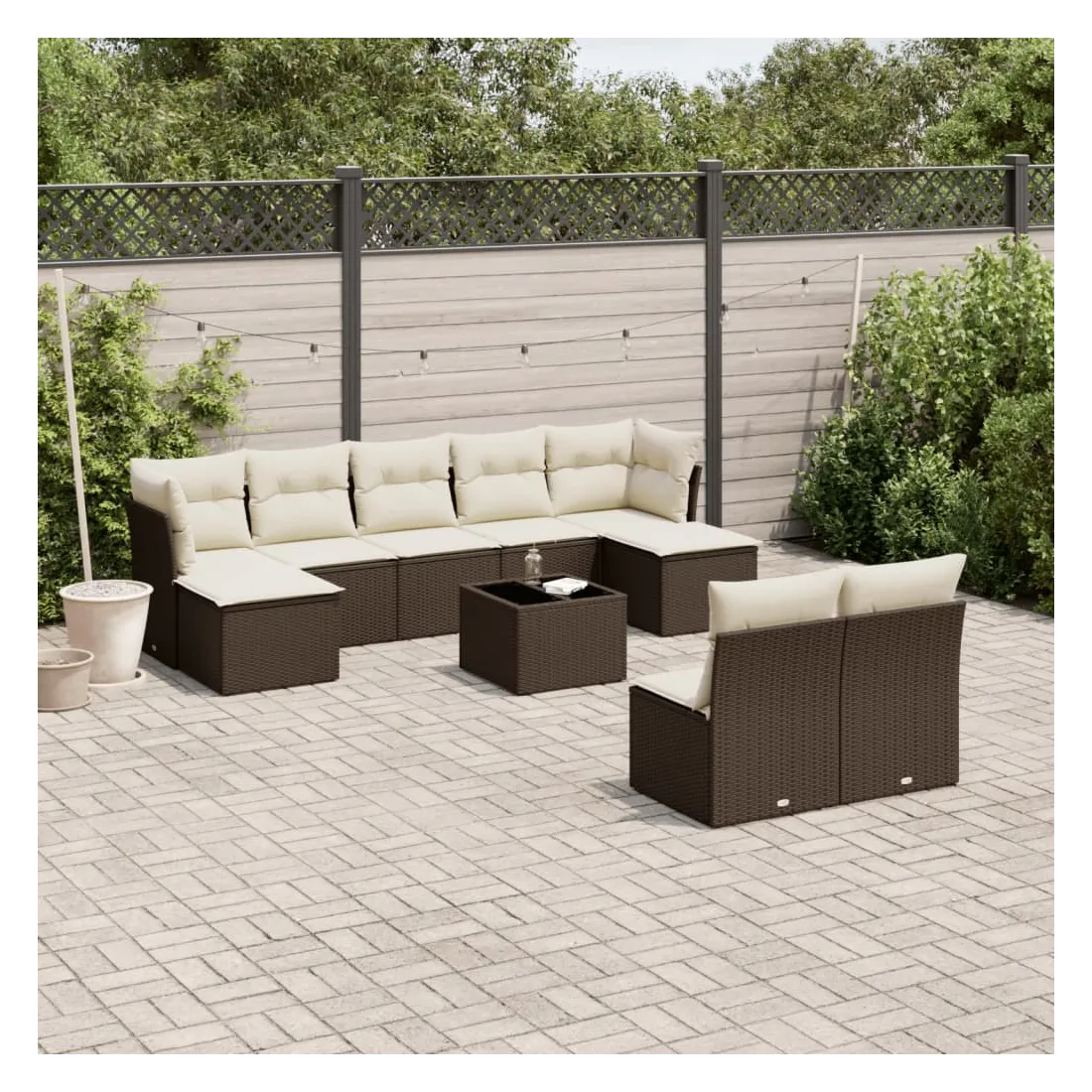 Cet ensemble de canapés de jardin est le complément parfait de votre arrière-cour, terrasse ou patio, offrant un espace confortable et accueillant pour discuter avec la famille et les amis ou simplement se détendre et profiter de l'extérieur. Matériau durable : la résine tressée, également connue sous le nom de poly rotin, est un matériau synthétique solide et nécessitant peu d'entretien qui ressemble au rotin naturel. Il est léger, facile à nettoyer et couramment utilisé pour les meubles d'extérieur en raison de sa durabilité et de ses propriétés de résistance aux intempéries.Fonction de rangement avec sac résistant à l'eau : chaque siège de jardin dispose d'un espace de rangement sous l'assise, complété par un sac résistant à l'eau pour ranger les coussins, les jouets et d'autres objets. Les sacs intérieurs sont dotés d'un couvercle et peuvent être solidement fixés aux sièges à l'aide de bandes auto-agrippantes pour plus de stabilité.Dessus en verre : le dessus de la table d'extérieur est fabriqué en verre trempé solide et durable, ce qui le rend facile à nettoyer avec un chiffon humide et ajoute une touche d'élégance à votre espace extérieur.Housse amovible et lavable : ces coussins de siège sont dotés de housses amovibles pour un lavage et un entretien faciles.Conception modulaire : cet ensemble de meubles d'extérieur a une conception modulaire, ce qui le rend complètement flexible et facile à déplacer, afin que vous puissiez créer un agencement de meubles d'extérieur personnalisé. Bon à savoir :Pour que vos meubles d'extérieur restent beaux, nous vous recommandons de les protéger avec une housse imperméable.