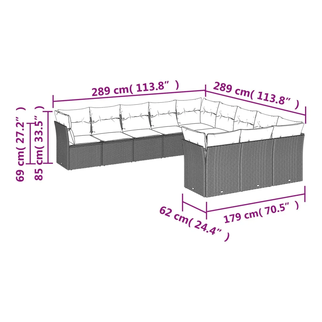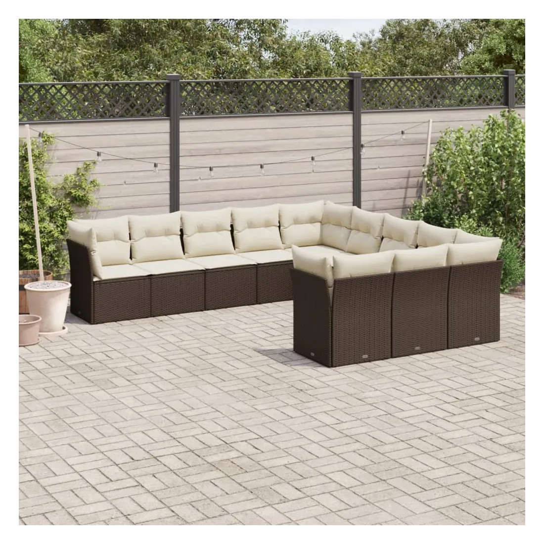 Cet ensemble de canapés de jardin est le complément parfait de votre arrière-cour, terrasse ou patio, offrant un espace confortable et accueillant pour discuter avec la famille et les amis ou simplement se détendre et profiter de l'extérieur. Matériau durable : la résine tressée, également connue sous le nom de poly rotin, est un matériau synthétique solide et nécessitant peu d'entretien qui ressemble au rotin naturel. Il est léger, facile à nettoyer et couramment utilisé pour les meubles d'extérieur en raison de sa durabilité et de ses propriétés de résistance aux intempéries.Fonction de rangement avec sac résistant à l'eau : chaque siège de jardin dispose d'un espace de rangement sous l'assise, complété par un sac résistant à l'eau pour ranger les coussins, les jouets et d'autres objets. Les sacs intérieurs sont dotés d'un couvercle et peuvent être solidement fixés aux sièges à l'aide de bandes auto-agrippantes pour plus de stabilité.Housse amovible et lavable : ces coussins de siège sont dotés de housses amovibles pour un lavage et un entretien faciles.Conception modulaire : cet ensemble de meubles d'extérieur a une conception modulaire, ce qui le rend complètement flexible et facile à déplacer, afin que vous puissiez créer un agencement de meubles d'extérieur personnalisé. Bon à savoir :Pour que vos meubles d'extérieur restent beaux, nous vous recommandons de les protéger avec une housse imperméable.