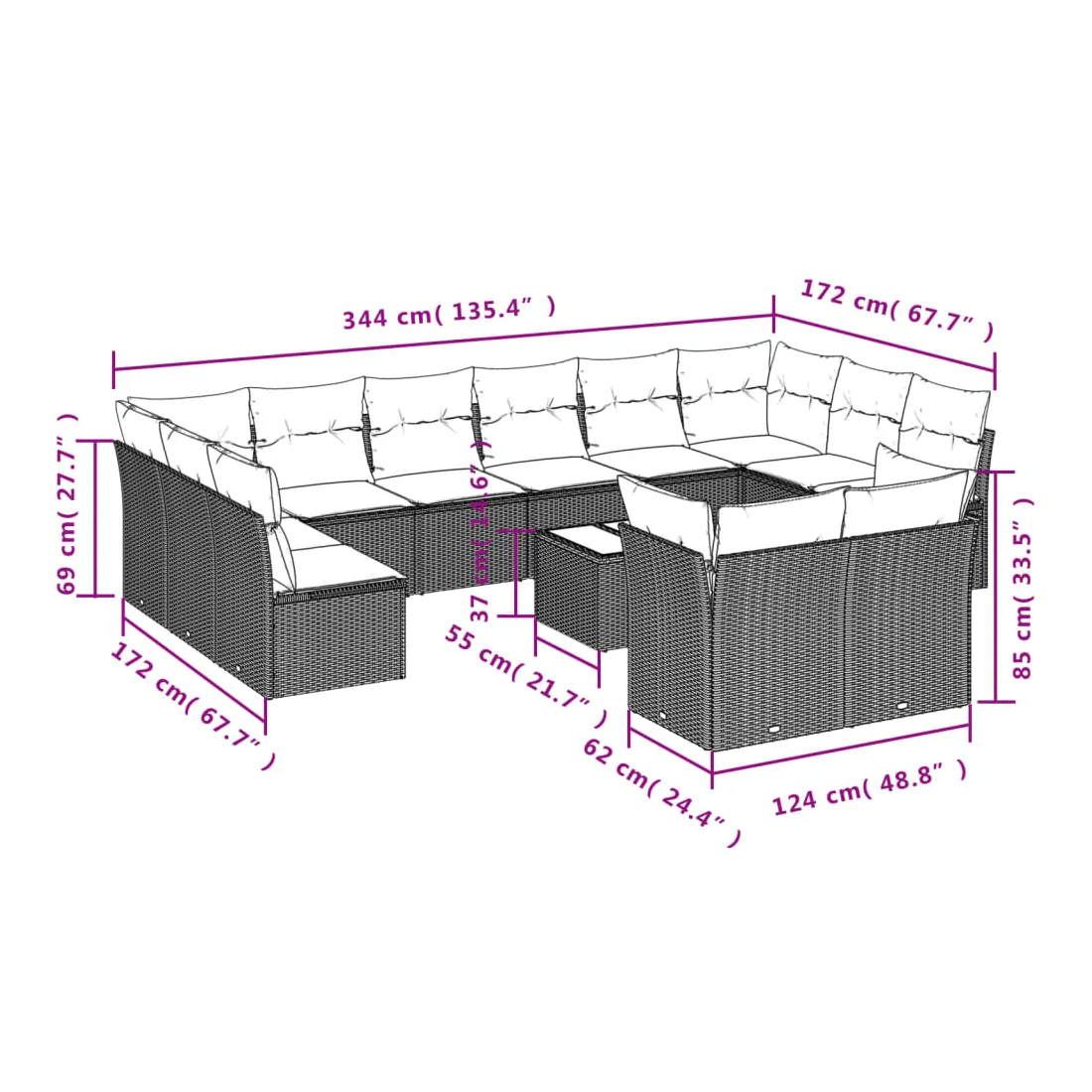 - Dimensions du coussin de dossier : 55 x 45 x 13 cm (L x l x é)