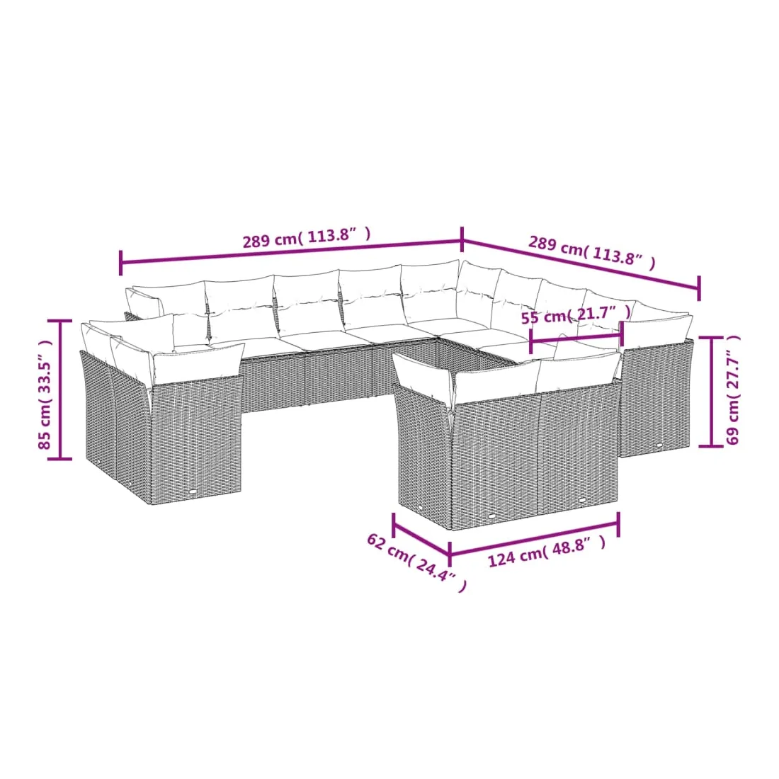 - Dimensions du coussin de dossier : 55 x 45 x 13 cm (L x l x é)