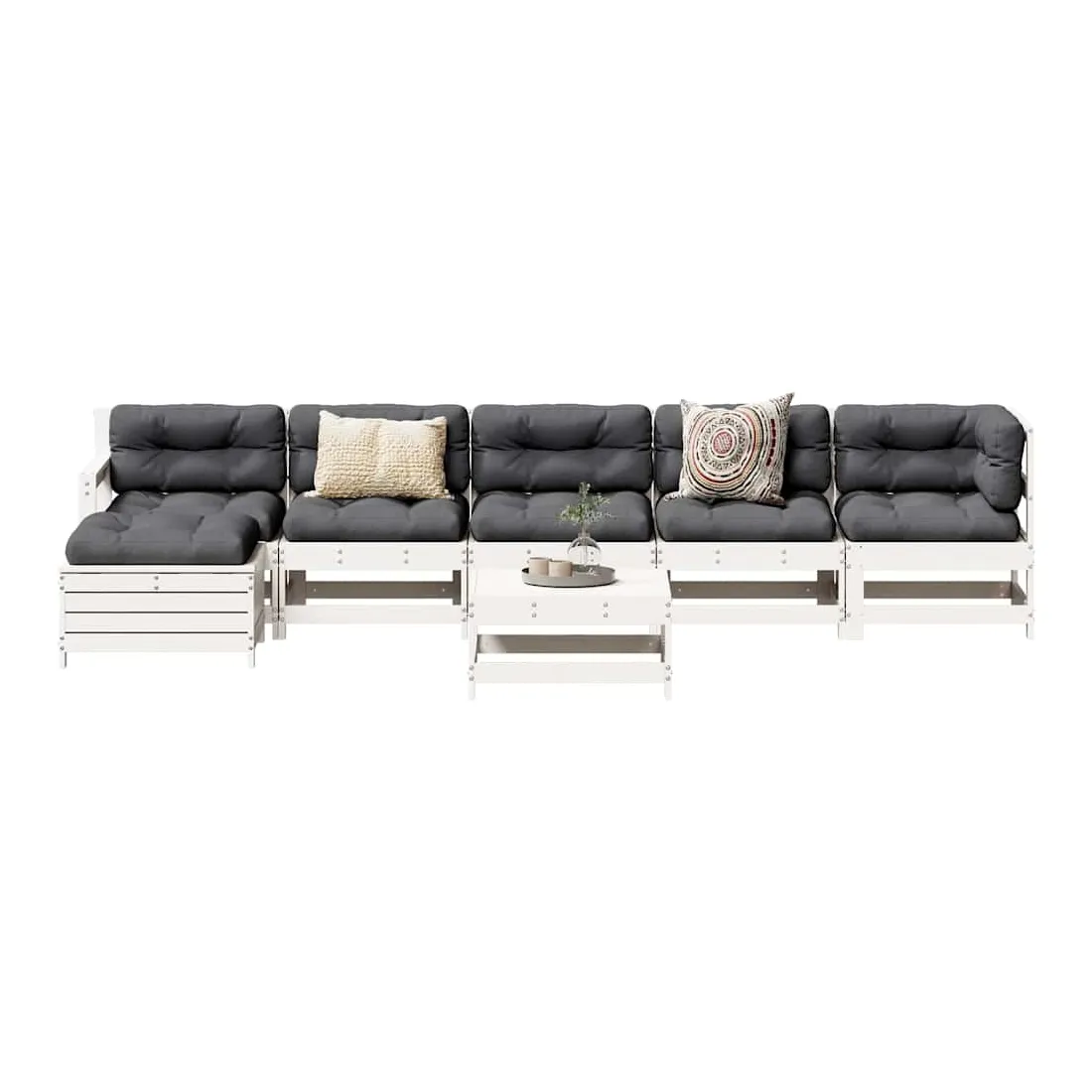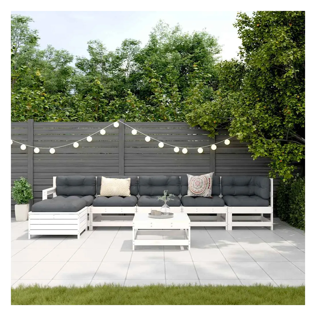 Cet ensemble de salon de jardin en bois avec un design à lattes sera un excellent complément à votre jardin, patio ou terrasse pour profiter d'un moment agréable avec votre famille ou vos amis. Bois de pin massif : le bois de pin massif est un matériau naturel magnifique. Le bois de pin a un grain droit et les nœuds donnent au matériau son aspect caractéristique et rustique.Cadre robuste et stable : les cadres en bois rendent l'ensemble de salon robuste et stable pour une utilisation quotidienne à l'extérieur.Expérience d'assise confortable : les dossiers et les accoudoirs ajoutent un confort d'assise supplémentaire à l'ensemble de mobilier de jardin. Utilisation polyvalente : le pouf d'extérieur avec couvercle peut non seulement être utilisé pour s'asseoir ou se détendre, mais il peut également être utilisé comme table basse pour contenir vos boissons, votre nourriture et le meuble de jardin dispose d'un espace de rangement sous le siège. Conception modulaire : cet ensemble de meubles d'extérieur a une conception modulaire, ce qui le rend complètement flexible et facile à déplacer, afin que vous puissiez créer un agencement de meubles d'extérieur personnalisé. Bon à savoir :Pour que vos meubles d'extérieur restent beaux, nous vous recommandons de les protéger avec une housse imperméable.