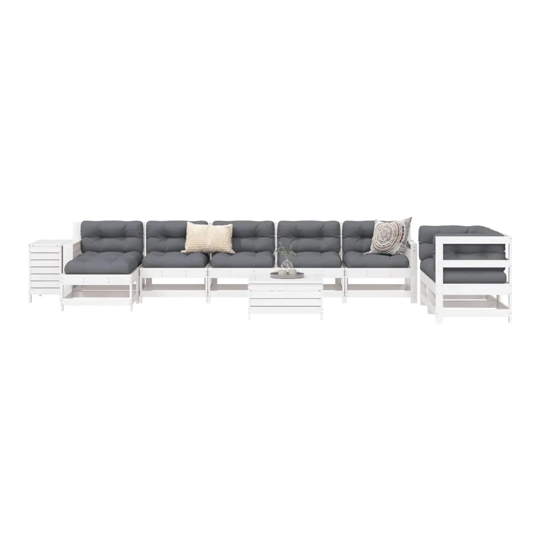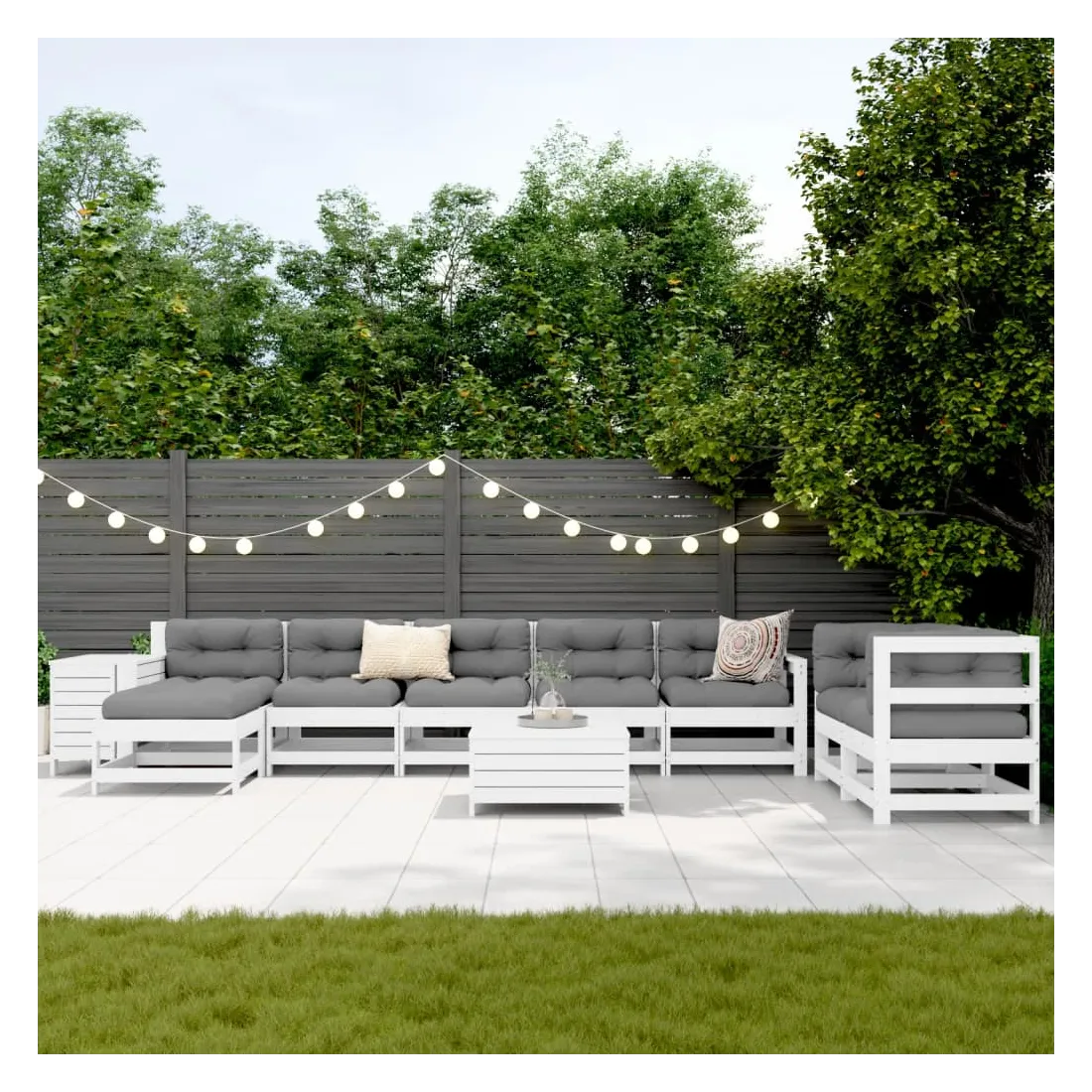 Cet ensemble de salon de jardin en bois avec un design à lattes sera un excellent complément à votre jardin, patio ou terrasse pour profiter d'un moment agréable avec votre famille ou vos amis. Matériau robuste et durable : le bois de pin massif est connu pour sa résistance et sa durabilité. Ses grains droits et ses nœuds distinctifs contribuent à son charme rustique. Bien ventilé et prévention de l'accumulation d'eau : la conception à lattes favorise une circulation optimale de l'air et empêche efficacement l'accumulation d'eau, assurant ainsi une assise sèche et confortable. Utilisation polyvalente : le repose-pied de jardin peut non seulement être utilisé pour s'asseoir ou se détendre, mais il peut également être utilisé comme table basse pour contenir vos boissons, votre nourriture et d'autres décorations. Table pratique : la table de jardin vous offre un endroit pratique pour atteindre facilement vos essentiels. Conception modulaire : cet ensemble de meubles d'extérieur a une conception modulaire, ce qui le rend complètement flexible et facile à déplacer, afin que vous puissiez créer un agencement de meubles d'extérieur personnalisé. Bon à savoir :Pour que vos meubles d'extérieur restent beaux, nous vous recommandons de les protéger avec une housse imperméable.