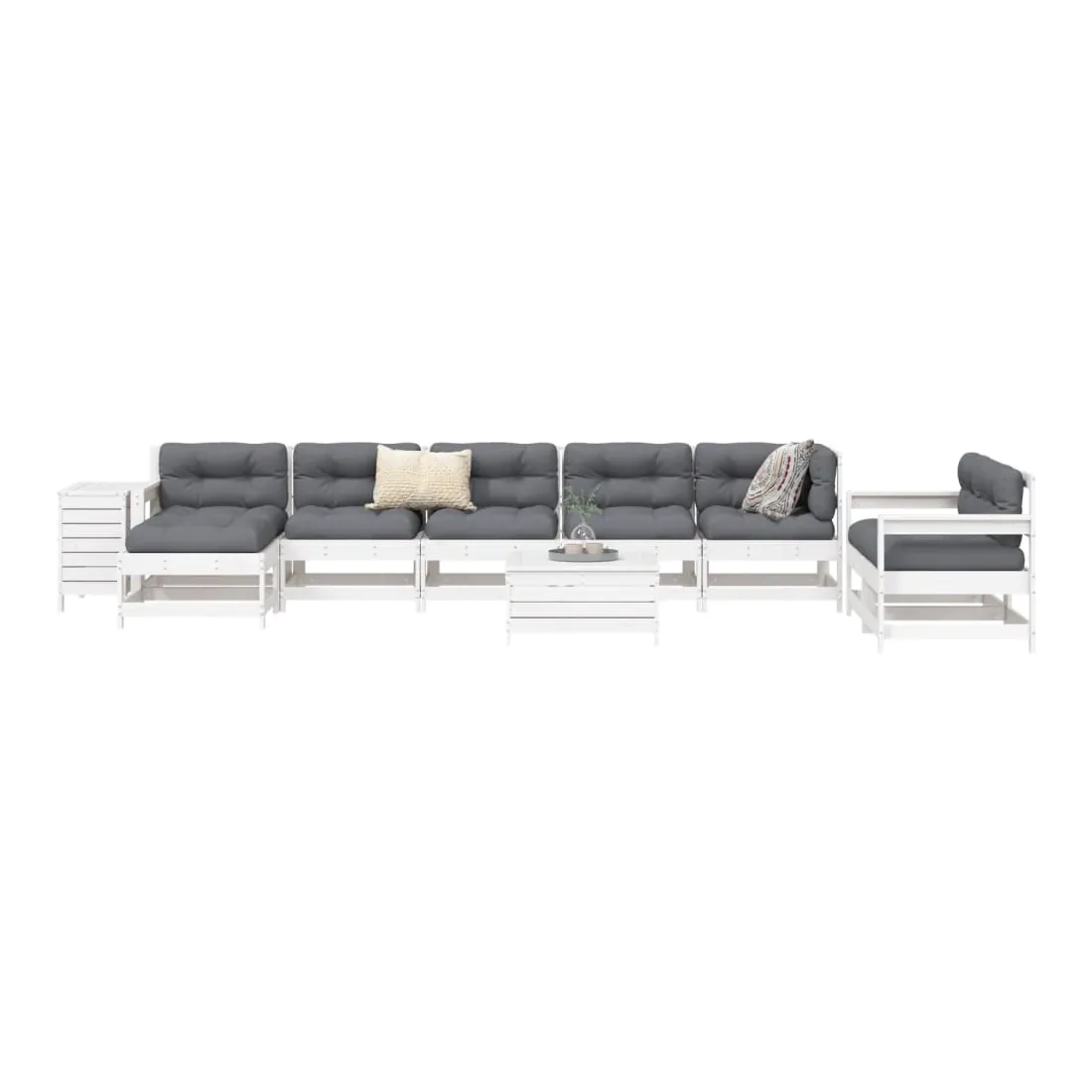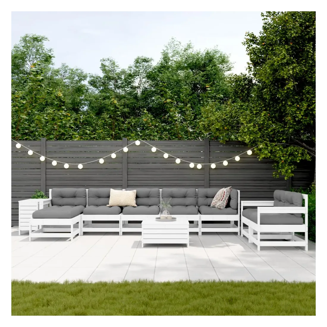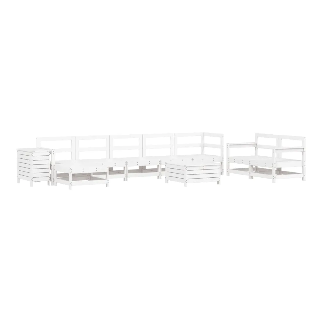 Cet ensemble de salon de jardin en bois avec un design à lattes sera un excellent complément à votre jardin, patio ou terrasse pour profiter d'un moment agréable avec votre famille ou vos amis. Matériau robuste et durable : le bois de pin massif est connu pour sa résistance et sa durabilité. Ses grains droits et ses nœuds distinctifs contribuent à son charme rustique. Bien ventilé et prévention de l'accumulation d'eau : la conception à lattes favorise une circulation optimale de l'air et empêche efficacement l'accumulation d'eau, assurant ainsi une assise sèche et confortable. Utilisation polyvalente : le repose-pied de jardin peut non seulement être utilisé pour s'asseoir ou se détendre, mais il peut également être utilisé comme table basse pour contenir vos boissons, votre nourriture et d'autres décorations. Table pratique : la table de jardin vous offre un endroit pratique pour atteindre facilement vos essentiels. Conception modulaire : cet ensemble de meubles d'extérieur a une conception modulaire, ce qui le rend complètement flexible et facile à déplacer, afin que vous puissiez créer un agencement de meubles d'extérieur personnalisé. Bon à savoir :Pour que vos meubles d'extérieur restent beaux, nous vous recommandons de les protéger avec une housse imperméable.