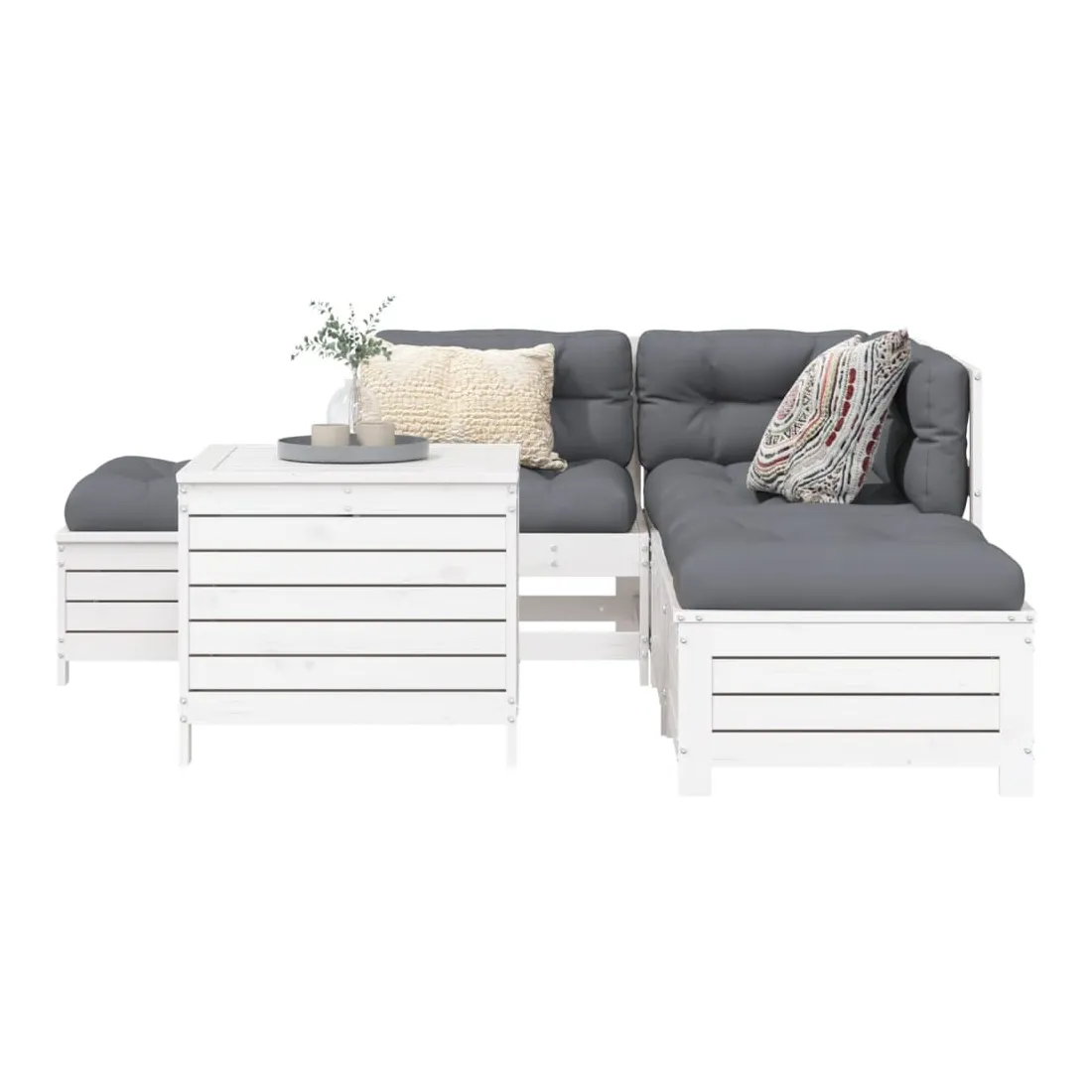 Cet ensemble de salon de jardin en bois avec un design à lattes sera un excellent complément à votre jardin, patio ou terrasse pour profiter d'un moment agréable avec votre famille ou vos amis. Matériau robuste et durable : le bois de pin massif est connu pour sa résistance et sa durabilité. Ses grains droits et ses nœuds distinctifs contribuent à son charme rustique. Bien ventilé et prévention de l'accumulation d'eau : la conception à lattes favorise une circulation optimale de l'air et empêche efficacement l'accumulation d'eau, assurant ainsi une assise sèche et confortable. Utilisation polyvalente : le repose-pied de jardin peut non seulement être utilisé pour s'asseoir ou se détendre, mais il peut également être utilisé comme table basse pour contenir vos boissons, votre nourriture et d'autres décorations. Table pratique : la table de jardin vous offre un endroit pratique pour atteindre facilement vos essentiels. Conception modulaire : cet ensemble de meubles d'extérieur a une conception modulaire, ce qui le rend complètement flexible et facile à déplacer, afin que vous puissiez créer un agencement de meubles d'extérieur personnalisé. Bon à savoir :Pour que vos meubles d'extérieur restent beaux, nous vous recommandons de les protéger avec une housse imperméable.