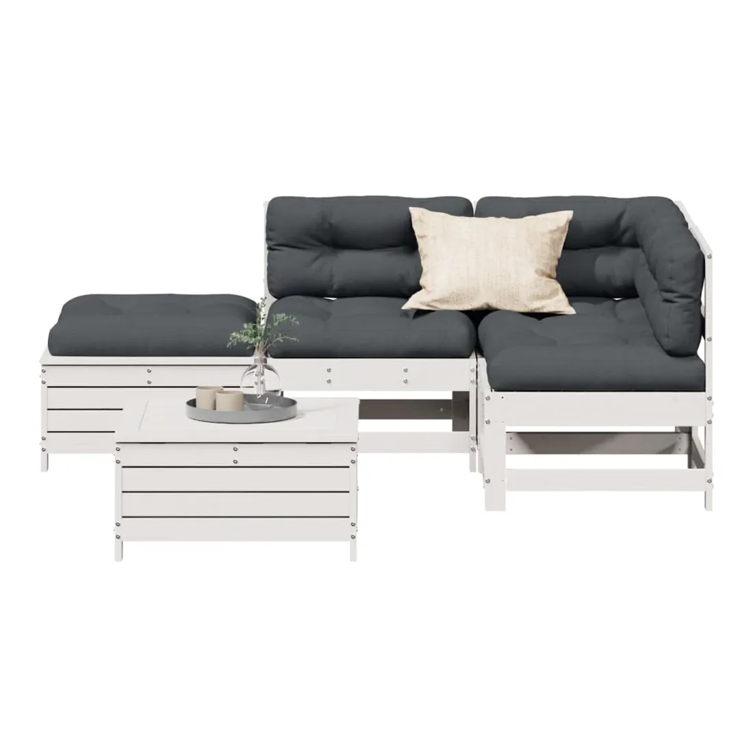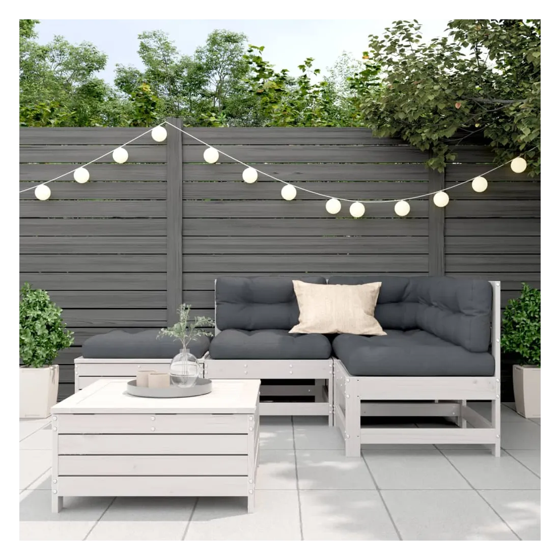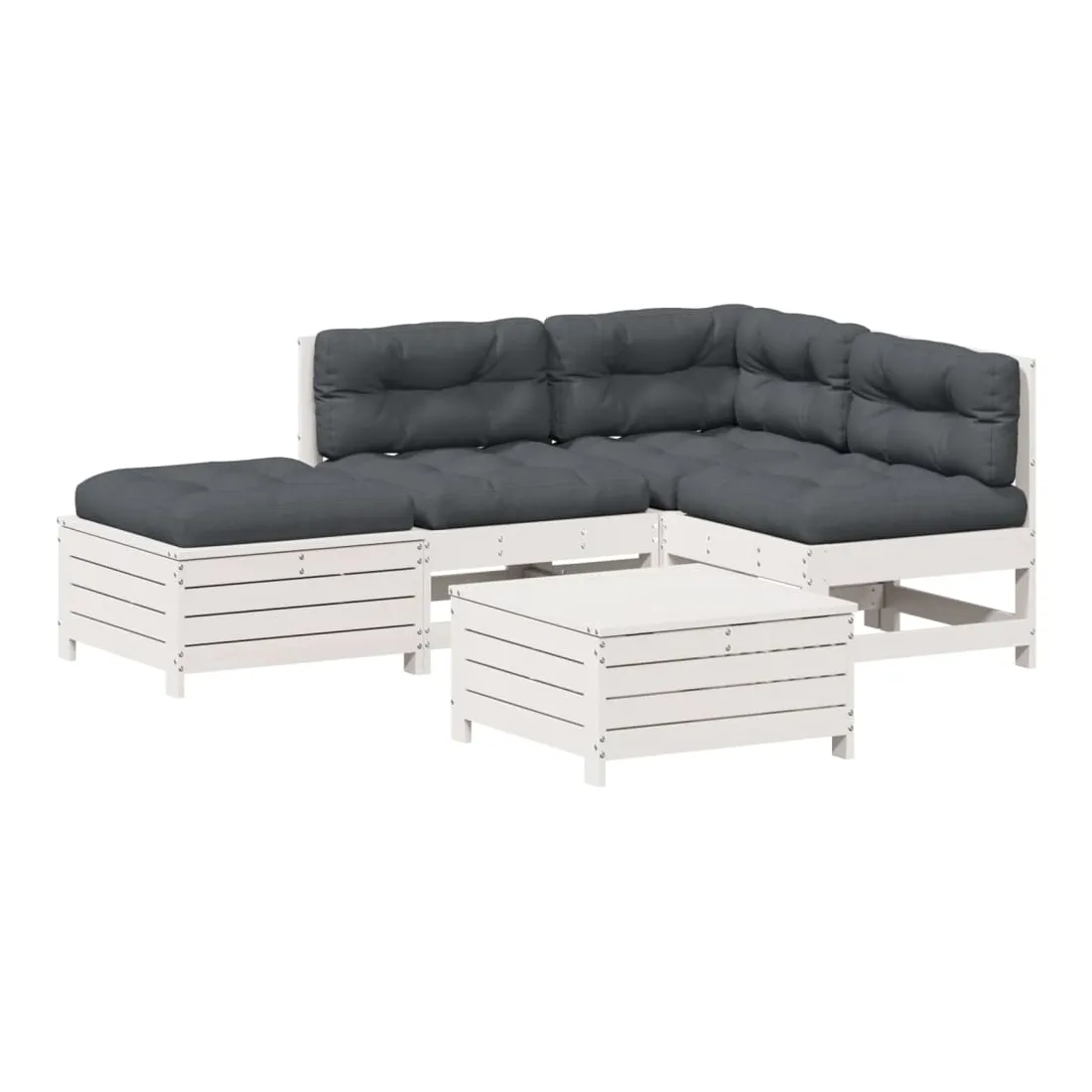 Salon de jardin 5 pcs avec coussins blanc bois massif de pin