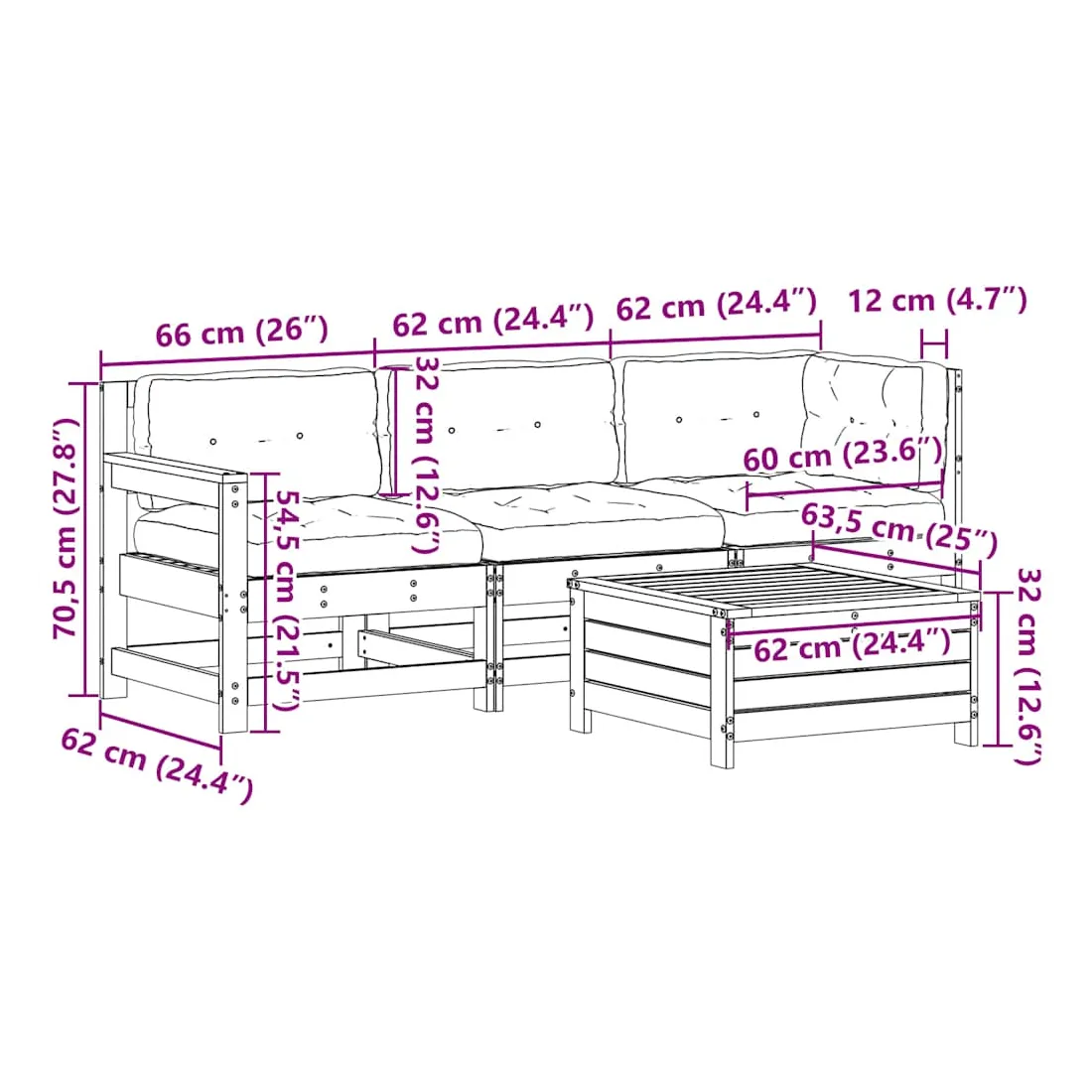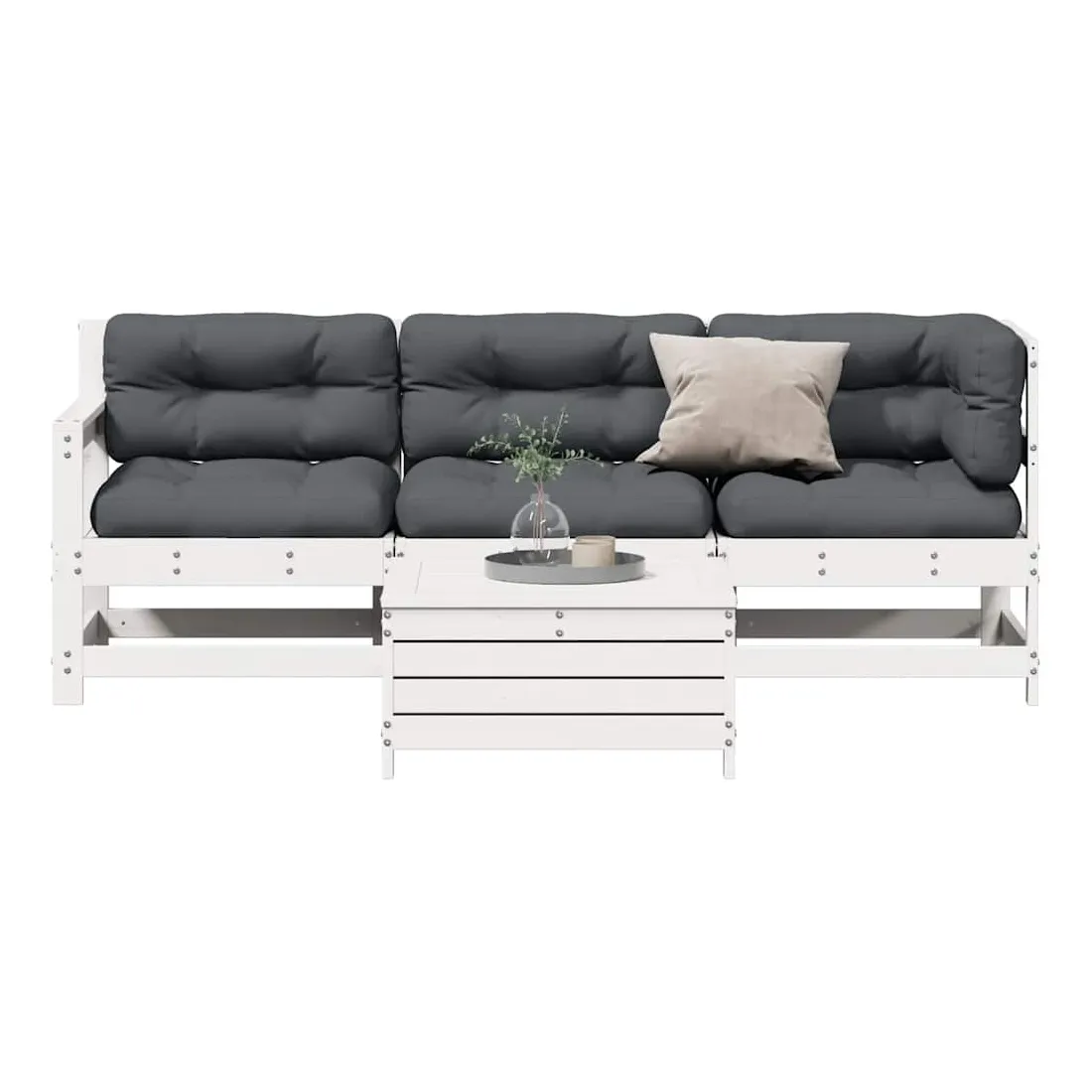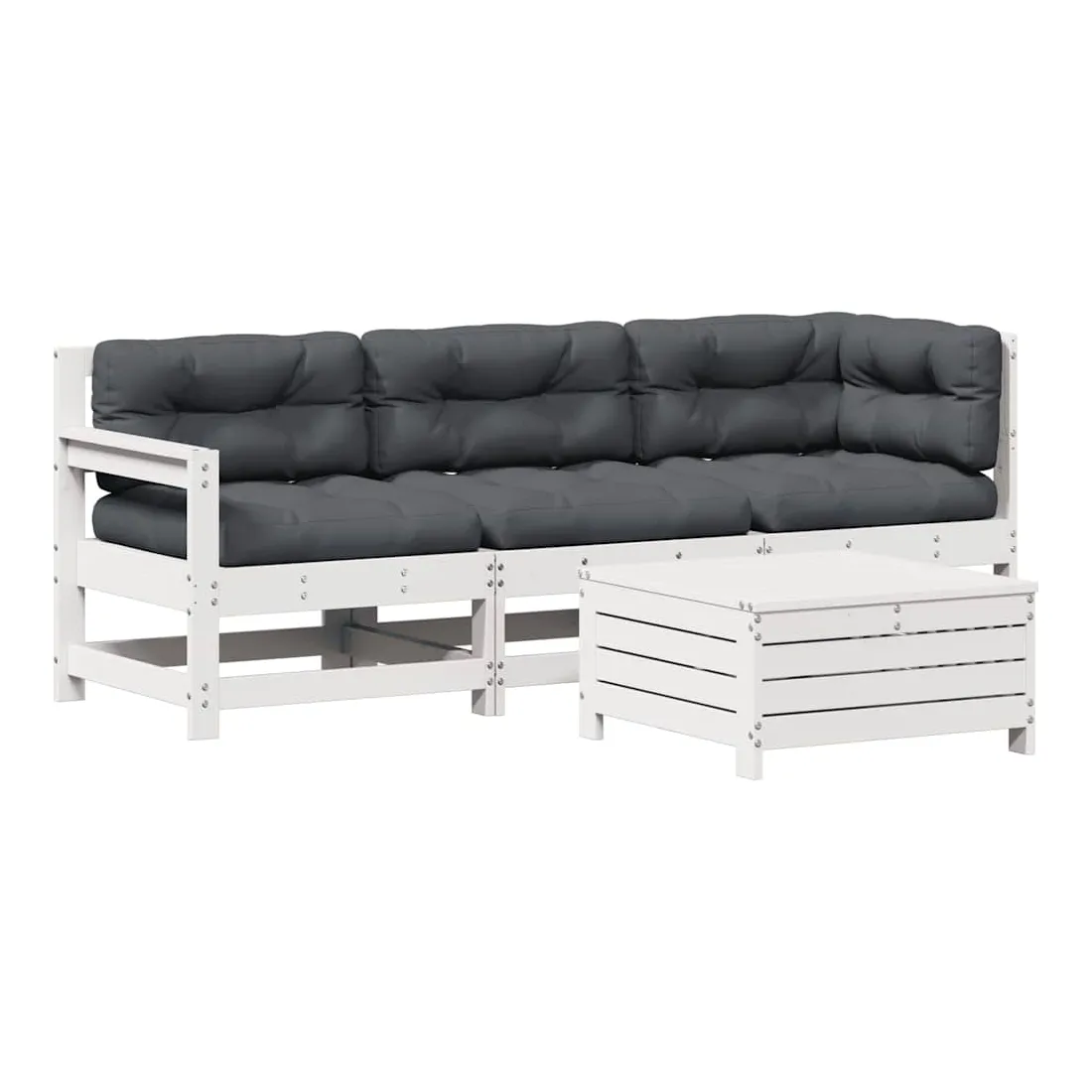 Salon de jardin 4 pcs avec coussins blanc bois de pin massif