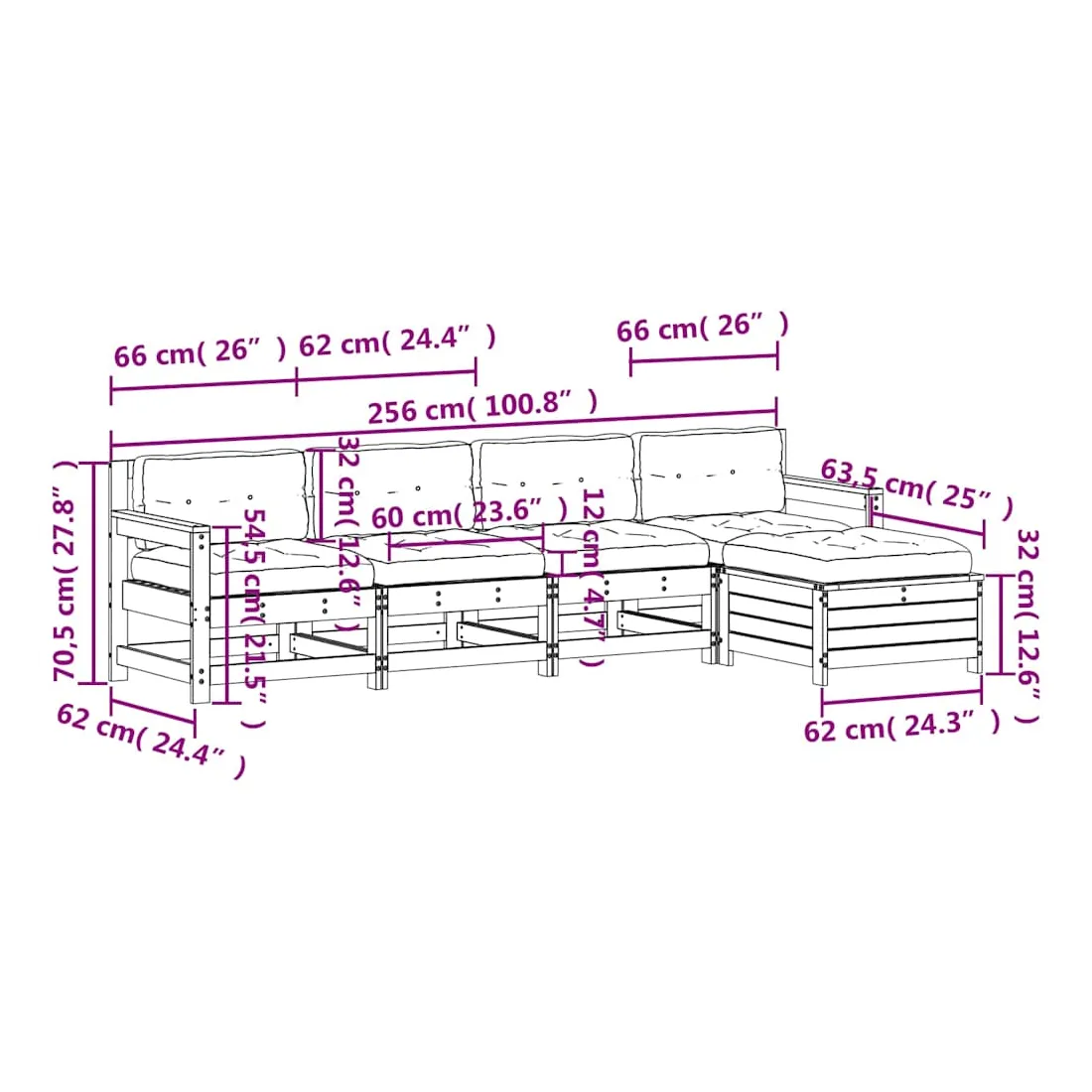 - Dimensions du repose-pied de jardin : 62 x 63,5 x 32 cm (l x P x H)