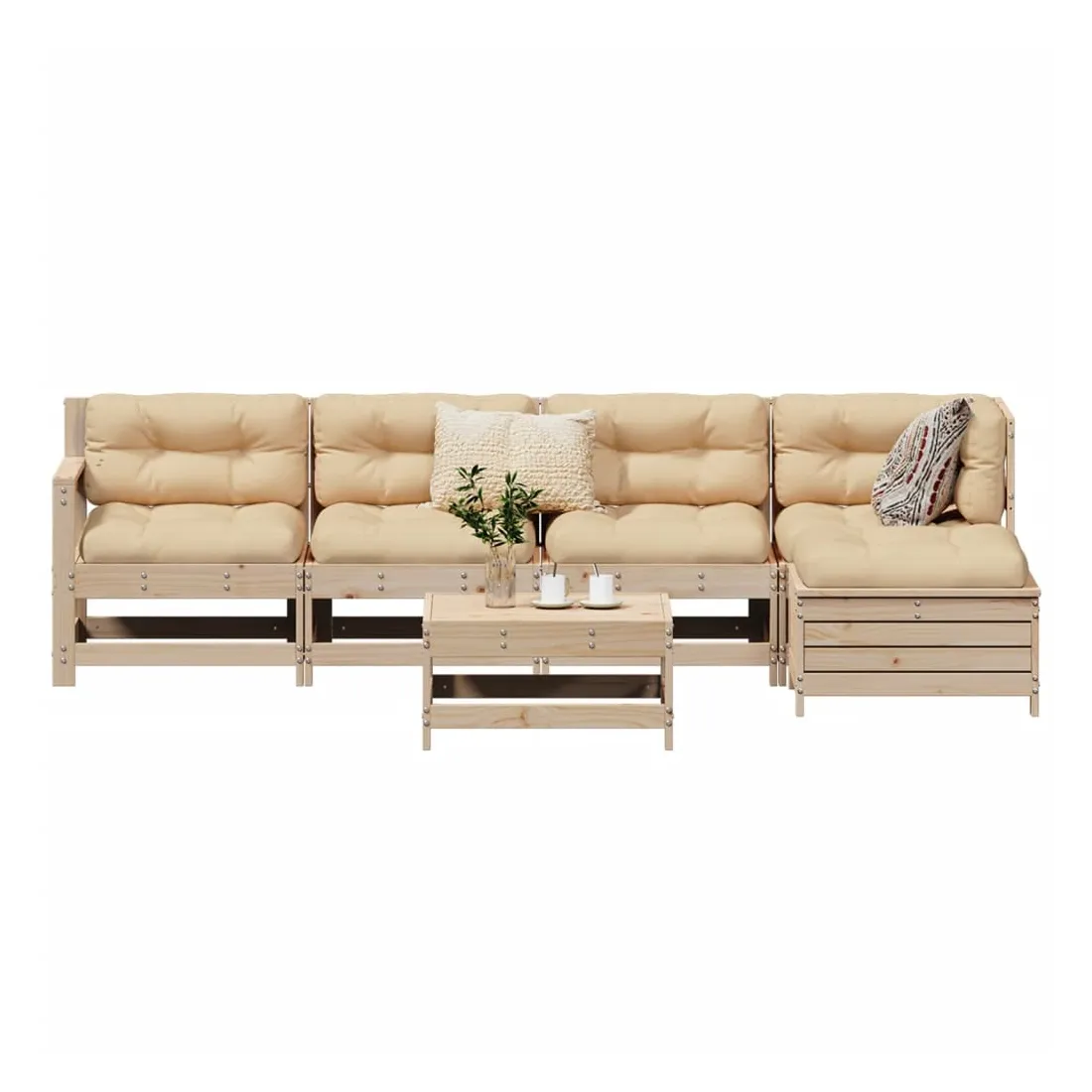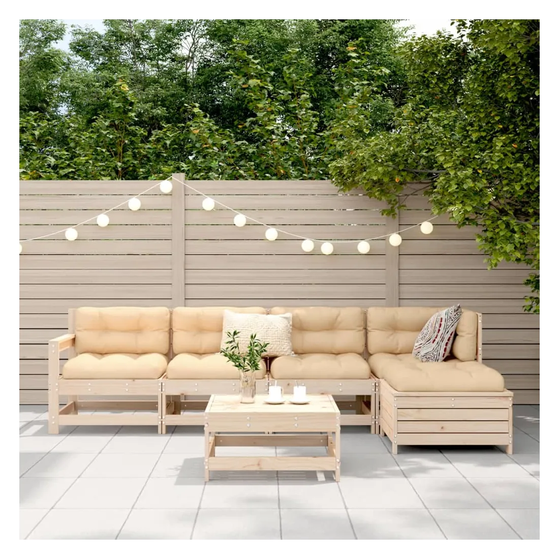 Cet ensemble de salon de jardin en bois avec un design à lattes sera un excellent complément à votre jardin, patio ou terrasse pour profiter d'un moment agréable avec votre famille ou vos amis. Matériau robuste et durable : le bois de pin massif est connu pour sa résistance et sa durabilité. Ses grains droits et ses nœuds distinctifs contribuent à son charme rustique. Bien ventilé et prévention de l'accumulation d'eau : la conception à lattes favorise une circulation optimale de l'air et empêche efficacement l'accumulation d'eau, assurant ainsi une assise sèche et confortable. Utilisation polyvalente : le repose-pied de jardin peut non seulement être utilisé pour s'asseoir ou se détendre, mais il peut également être utilisé comme table basse pour contenir vos boissons, votre nourriture et d'autres décorations. Conception modulaire : cet ensemble de meubles d'extérieur a une conception modulaire, ce qui le rend complètement flexible et facile à déplacer, afin que vous puissiez créer un agencement de meubles d'extérieur personnalisé. Bon à savoir :Pour que vos meubles d'extérieur restent beaux, nous vous recommandons de les protéger avec une housse imperméable.