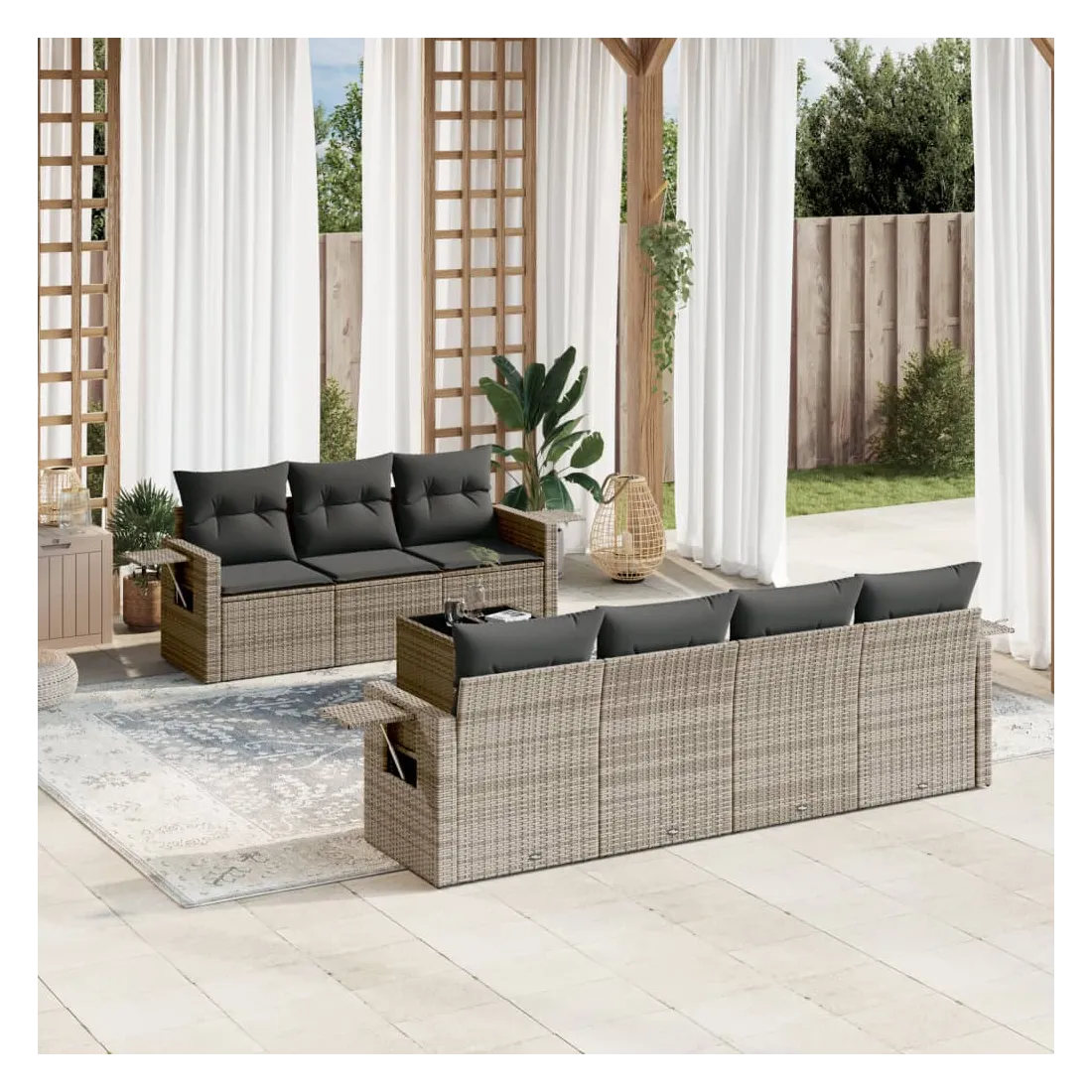Cet ensemble de canapés de jardin est le complément parfait de votre arrière-cour, terrasse ou patio, offrant un espace confortable et accueillant pour discuter avec la famille et les amis ou simplement se détendre et profiter de l'extérieur. Matériau durable : la résine tressée, également connue sous le nom de poly rotin, est un matériau synthétique solide et nécessitant peu d'entretien qui ressemble au rotin naturel. Il est léger, facile à nettoyer et couramment utilisé pour les meubles d'extérieur en raison de sa durabilité et de ses propriétés de résistance aux intempéries.Fonction de rangement avec sac résistant à l'eau : le mobilier de jardin dispose d'un espace de rangement sous l'assise, complété par un sac résistant à l'eau pour ranger coussins, jouets et autres objets. Le sac intérieur peut être solidement fixé au mobilier d'extérieur grâce à des attaches auto-agrippantes pour plus de stabilité.Table d'appoint pratique : ce mobilier d'extérieur comprend une table d'appoint pliable avec un ressort à gaz sur les accoudoirs, offrant un endroit pratique pour garder vos essentiels à portée de main.Housse amovible et lavable : ces coussins de siège sont dotés de housses amovibles pour un lavage et un entretien faciles.Conception modulaire : cet ensemble de meubles d'extérieur a une conception modulaire, ce qui le rend complètement flexible et facile à déplacer, afin que vous puissiez créer un agencement de meubles d'extérieur personnalisé. Bon à savoir :Pour que vos meubles d'extérieur restent beaux, nous vous recommandons de les protéger avec une housse imperméable.