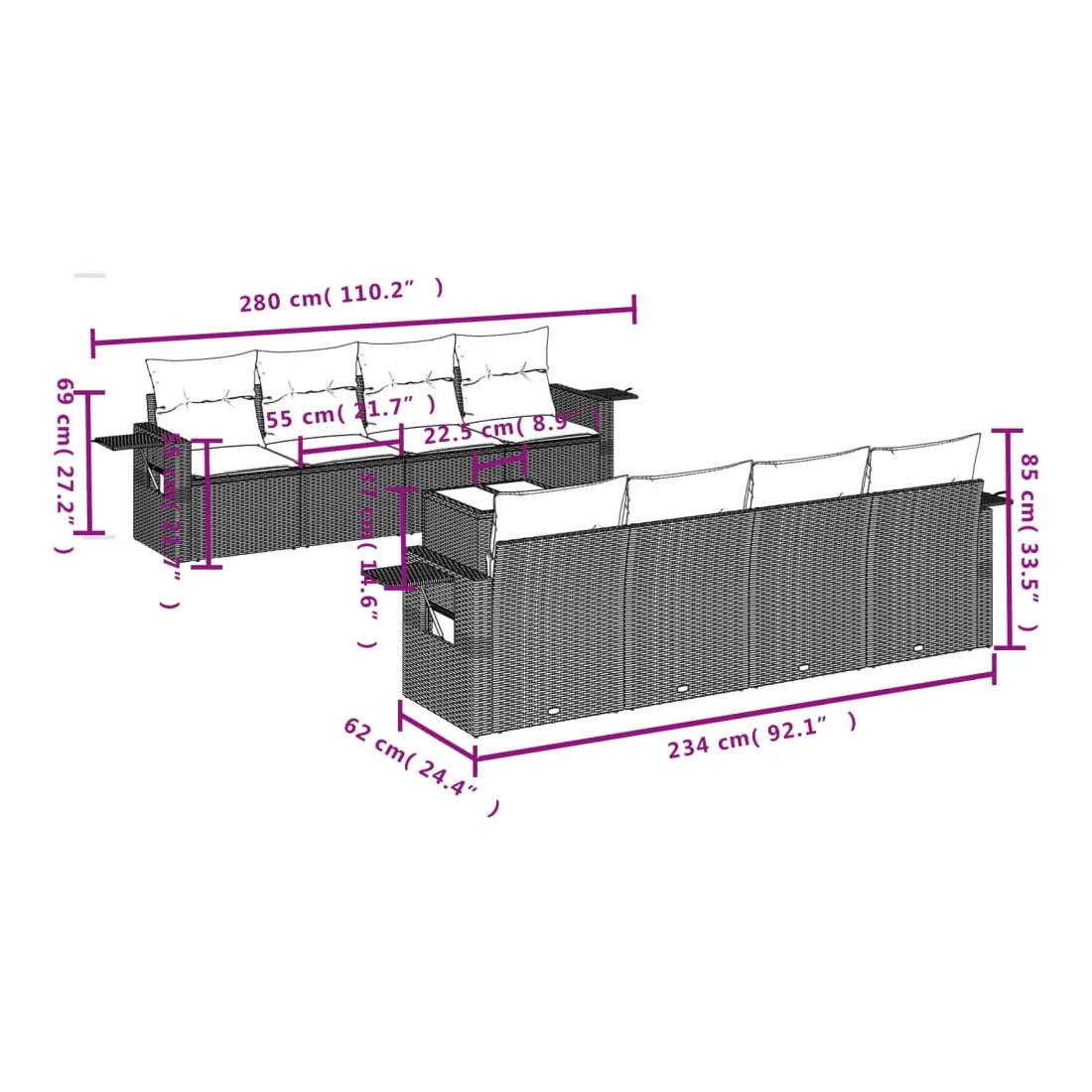 Cet ensemble de canapés de jardin est le complément parfait de votre arrière-cour, terrasse ou patio, offrant un espace confortable et accueillant pour discuter avec la famille et les amis ou simplement se détendre et profiter de l'extérieur. Matériau durable : la résine tressée, également connue sous le nom de poly rotin, est un matériau synthétique solide et nécessitant peu d'entretien qui ressemble au rotin naturel. Il est léger, facile à nettoyer et couramment utilisé pour les meubles d'extérieur en raison de sa durabilité et de ses propriétés de résistance aux intempéries.Fonction de rangement avec sac résistant à l'eau : le mobilier de jardin dispose d'un espace de rangement sous l'assise, complété par un sac résistant à l'eau pour ranger coussins, jouets et autres objets. Le sac intérieur peut être solidement fixé au mobilier d'extérieur grâce à des attaches auto-agrippantes pour plus de stabilité.Table d'appoint pratique : ce mobilier d'extérieur comprend une table d'appoint pliable avec un ressort à gaz sur les accoudoirs, offrant un endroit pratique pour garder vos essentiels à portée de main.Housse amovible et lavable : ces coussins de siège sont dotés de housses amovibles pour un lavage et un entretien faciles.Conception modulaire : cet ensemble de meubles d'extérieur a une conception modulaire, ce qui le rend complètement flexible et facile à déplacer, afin que vous puissiez créer un agencement de meubles d'extérieur personnalisé. Bon à savoir :Pour que vos meubles d'extérieur restent beaux, nous vous recommandons de les protéger avec une housse imperméable.