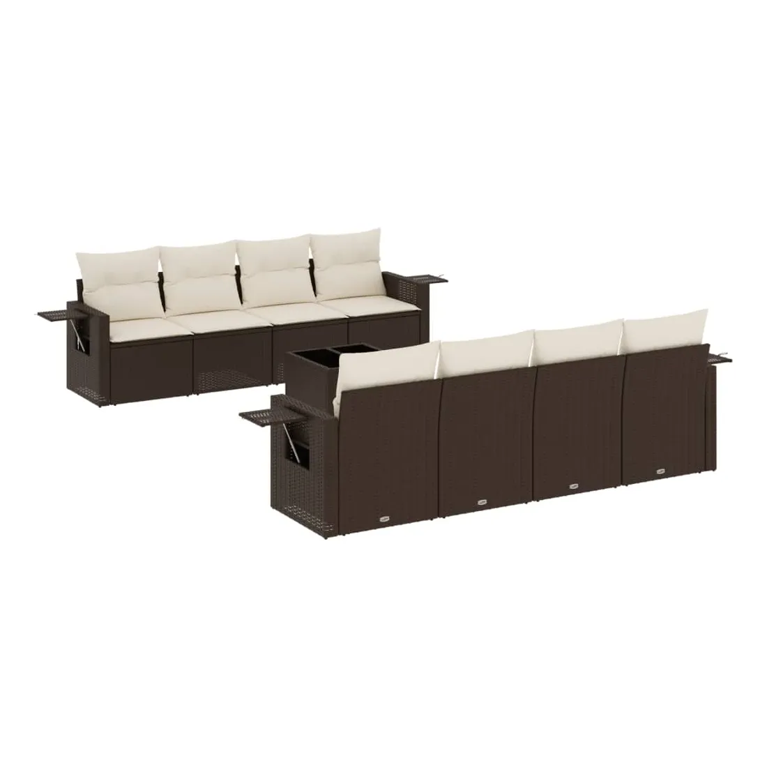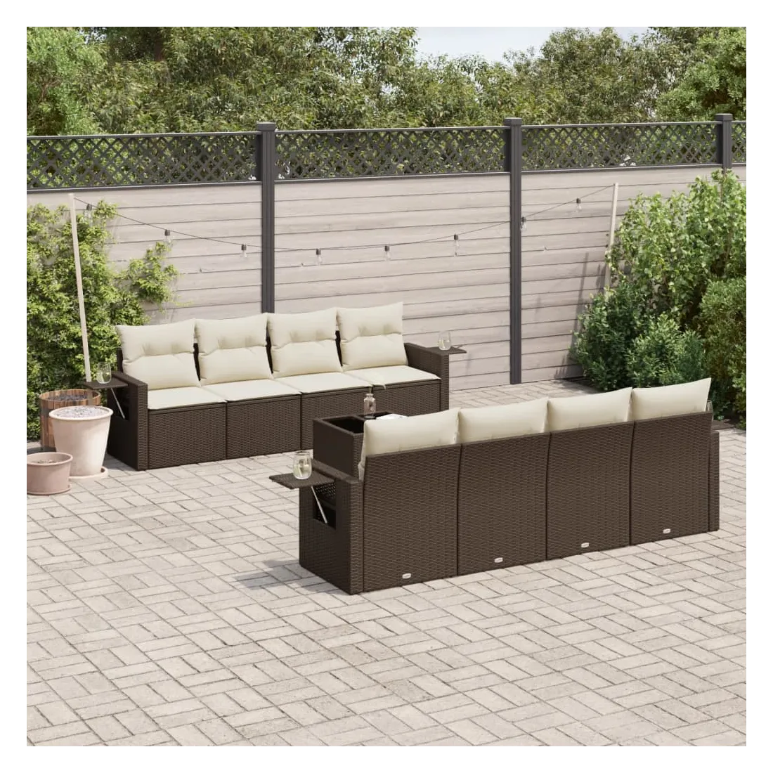Cet ensemble de canapés de jardin est le complément parfait de votre arrière-cour, terrasse ou patio, offrant un espace confortable et accueillant pour discuter avec la famille et les amis ou simplement se détendre et profiter de l'extérieur. Matériau durable : la résine tressée, également connue sous le nom de poly rotin, est un matériau synthétique solide et nécessitant peu d'entretien qui ressemble au rotin naturel. Il est léger, facile à nettoyer et couramment utilisé pour les meubles d'extérieur en raison de sa durabilité et de ses propriétés de résistance aux intempéries.Fonction de rangement avec sac résistant à l'eau : le mobilier de jardin dispose d'un espace de rangement sous l'assise, complété par un sac résistant à l'eau pour ranger coussins, jouets et autres objets. Le sac intérieur peut être solidement fixé au mobilier d'extérieur grâce à des attaches auto-agrippantes pour plus de stabilité.Table d'appoint pratique : ce mobilier d'extérieur comprend une table d'appoint pliable avec un ressort à gaz sur les accoudoirs, offrant un endroit pratique pour garder vos essentiels à portée de main.Housse amovible et lavable : ces coussins de siège sont dotés de housses amovibles pour un lavage et un entretien faciles.Conception modulaire : cet ensemble de meubles d'extérieur a une conception modulaire, ce qui le rend complètement flexible et facile à déplacer, afin que vous puissiez créer un agencement de meubles d'extérieur personnalisé. Bon à savoir :Pour que vos meubles d'extérieur restent beaux, nous vous recommandons de les protéger avec une housse imperméable.