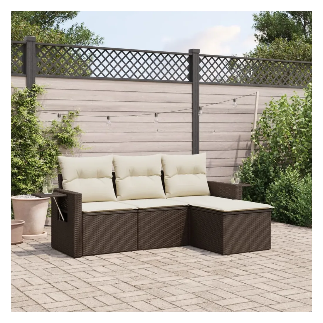 Cet ensemble de canapés de jardin est le complément parfait de votre arrière-cour, terrasse ou patio, offrant un espace confortable et accueillant pour discuter avec la famille et les amis ou simplement se détendre et profiter de l'extérieur. Matériau durable : la résine tressée, également connue sous le nom de poly rotin, est un matériau synthétique solide et nécessitant peu d'entretien qui ressemble au rotin naturel. Il est léger, facile à nettoyer et couramment utilisé pour les meubles d'extérieur en raison de sa durabilité et de ses propriétés de résistance aux intempéries.Fonction de rangement avec sac résistant à l'eau : le mobilier de jardin dispose d'un espace de rangement sous l'assise, complété par un sac résistant à l'eau pour ranger coussins, jouets et autres objets. Le sac intérieur peut être solidement fixé au mobilier d'extérieur grâce à des attaches auto-agrippantes pour plus de stabilité.Table d'appoint pratique : ce mobilier d'extérieur comprend une table d'appoint pliable avec un ressort à gaz sur les accoudoirs, offrant un endroit pratique pour garder vos essentiels à portée de main.Housse amovible et lavable : ces coussins de siège sont dotés de housses amovibles pour un lavage et un entretien faciles.Conception modulaire : cet ensemble de meubles d'extérieur a une conception modulaire, ce qui le rend complètement flexible et facile à déplacer, afin que vous puissiez créer un agencement de meubles d'extérieur personnalisé. Bon à savoir :Pour que vos meubles d'extérieur restent beaux, nous vous recommandons de les protéger avec une housse imperméable.