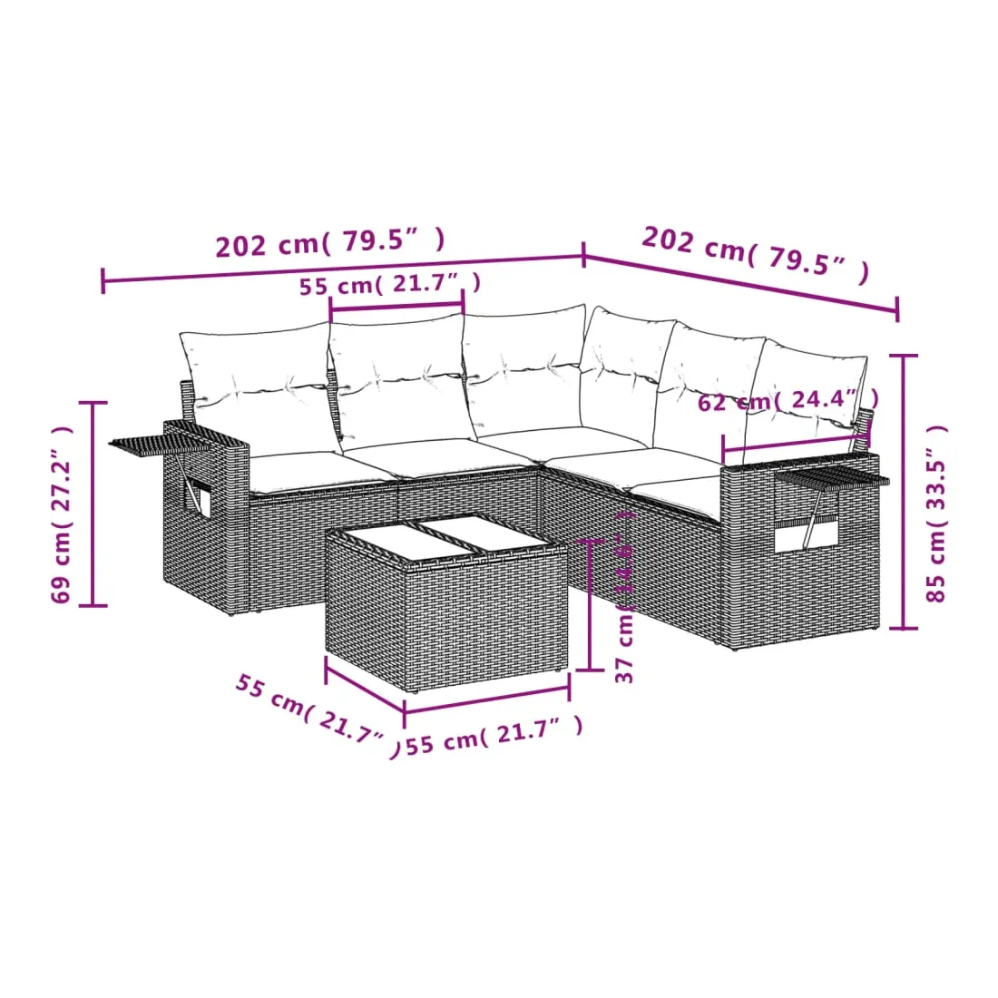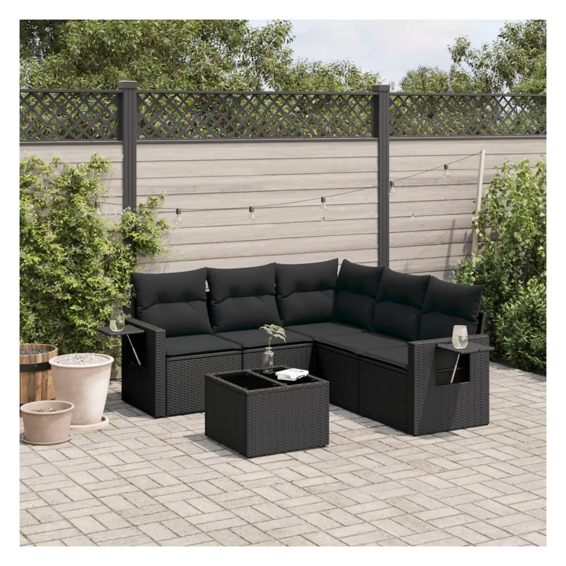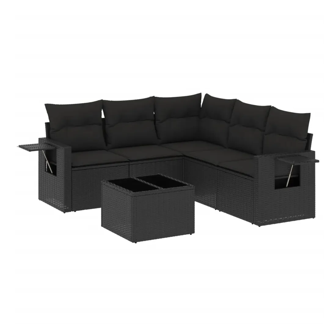 Salon de jardin 6 pcs avec coussins noir résine tressée