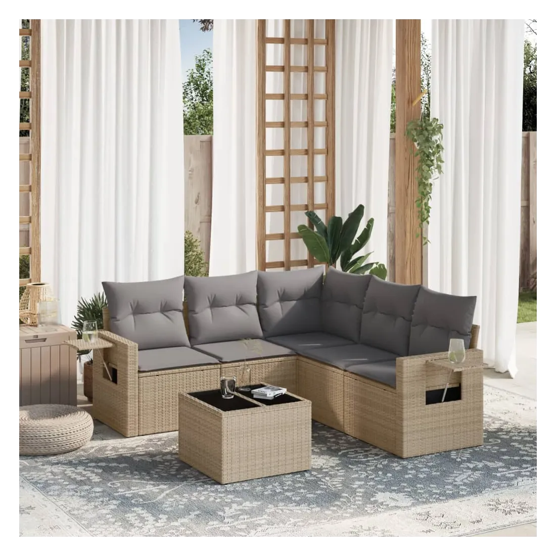Salon de jardin avec coussins 6 pcs beige résine tressée
