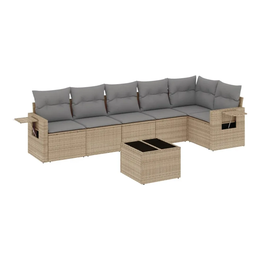 Salon de jardin avec coussins 7 pcs beige résine tressée