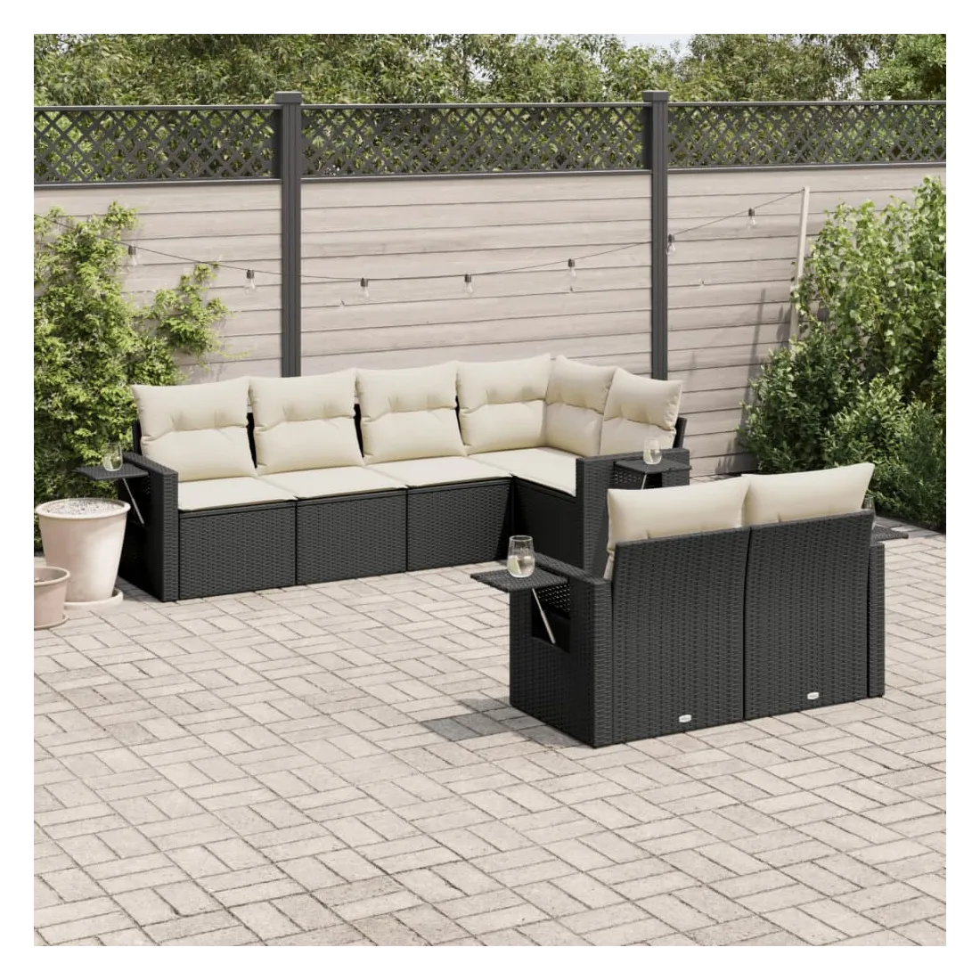 Cet ensemble de canapés de jardin est le complément parfait de votre arrière-cour, terrasse ou patio, offrant un espace confortable et accueillant pour discuter avec la famille et les amis ou simplement se détendre et profiter de l'extérieur. Matériau durable : la résine tressée, également connue sous le nom de poly rotin, est un matériau synthétique solide et nécessitant peu d'entretien qui ressemble au rotin naturel. Il est léger, facile à nettoyer et couramment utilisé pour les meubles d'extérieur en raison de sa durabilité et de ses propriétés de résistance aux intempéries.Fonction de rangement avec sac résistant à l'eau : le mobilier de jardin dispose d'un espace de rangement sous l'assise, complété par un sac résistant à l'eau pour ranger coussins, jouets et autres objets. Le sac intérieur peut être solidement fixé au mobilier d'extérieur grâce à des attaches auto-agrippantes pour plus de stabilité.Table d'appoint pratique : ce mobilier d'extérieur comprend une table d'appoint pliable avec un ressort à gaz sur les accoudoirs, offrant un endroit pratique pour garder vos essentiels à portée de main.Housse amovible et lavable : ces coussins de siège sont dotés de housses amovibles pour un lavage et un entretien faciles.Conception modulaire : cet ensemble de meubles d'extérieur a une conception modulaire, ce qui le rend complètement flexible et facile à déplacer, afin que vous puissiez créer un agencement de meubles d'extérieur personnalisé. Bon à savoir :Pour que vos meubles d'extérieur restent beaux, nous vous recommandons de les protéger avec une housse imperméable.