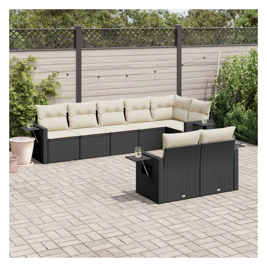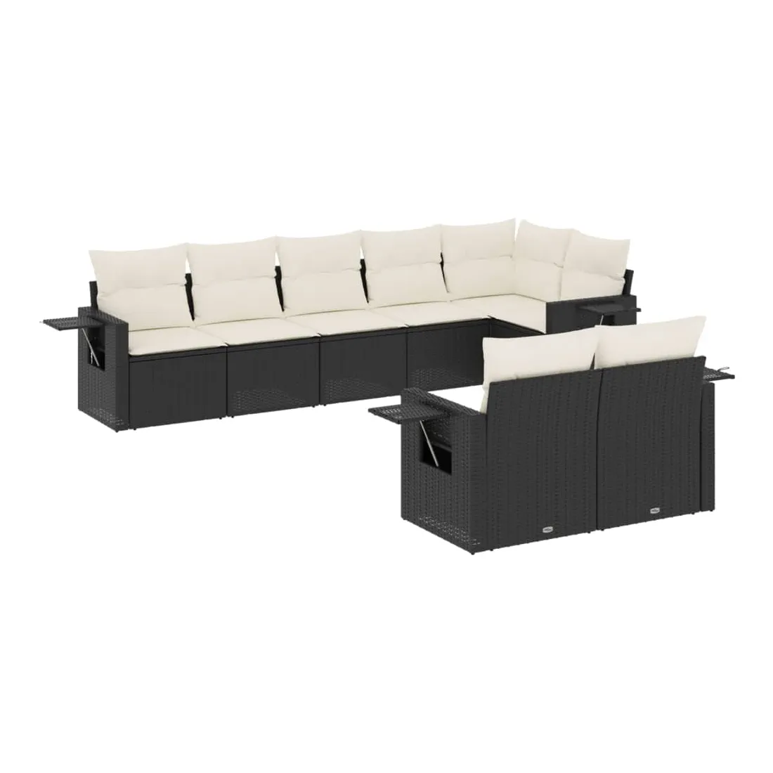 Salon de jardin 8 pcs avec coussins noir résine tressée