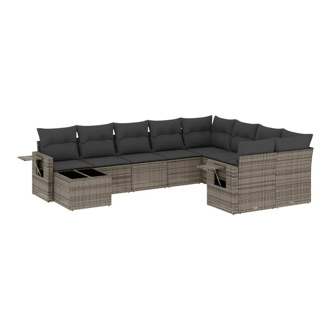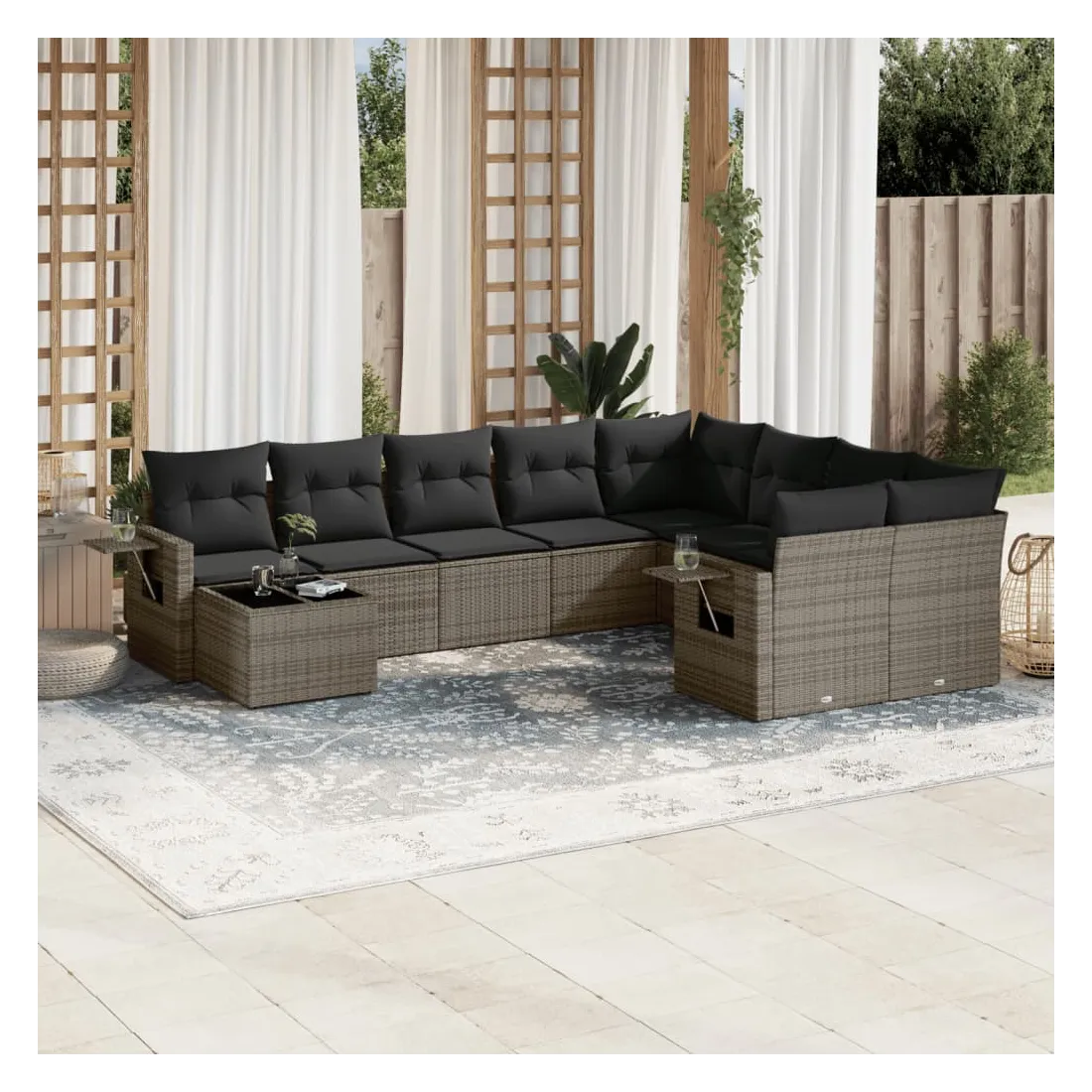 Salon de jardin avec coussins 10 pcs gris résine tressée