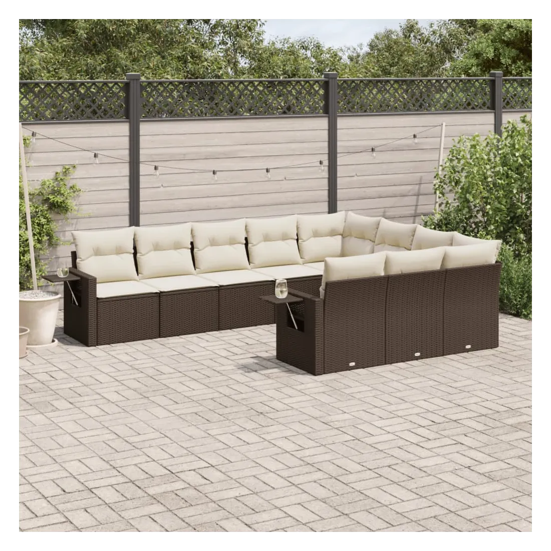 Cet ensemble de canapés de jardin est le complément parfait de votre arrière-cour, terrasse ou patio, offrant un espace confortable et accueillant pour discuter avec la famille et les amis ou simplement se détendre et profiter de l'extérieur. Matériau durable : la résine tressée, également connue sous le nom de poly rotin, est un matériau synthétique solide et nécessitant peu d'entretien qui ressemble au rotin naturel. Il est léger, facile à nettoyer et couramment utilisé pour les meubles d'extérieur en raison de sa durabilité et de ses propriétés de résistance aux intempéries.Fonction de rangement avec sac résistant à l'eau : le mobilier de jardin dispose d'un espace de rangement sous l'assise, complété par un sac résistant à l'eau pour ranger coussins, jouets et autres objets. Le sac intérieur peut être solidement fixé au mobilier d'extérieur grâce à des attaches auto-agrippantes pour plus de stabilité.Table d'appoint pratique : ce mobilier d'extérieur comprend une table d'appoint pliable avec un ressort à gaz sur les accoudoirs, offrant un endroit pratique pour garder vos essentiels à portée de main.Housse amovible et lavable : ces coussins de siège sont dotés de housses amovibles pour un lavage et un entretien faciles.Conception modulaire : cet ensemble de meubles d'extérieur a une conception modulaire, ce qui le rend complètement flexible et facile à déplacer, afin que vous puissiez créer un agencement de meubles d'extérieur personnalisé. Bon à savoir :Pour que vos meubles d'extérieur restent beaux, nous vous recommandons de les protéger avec une housse imperméable.