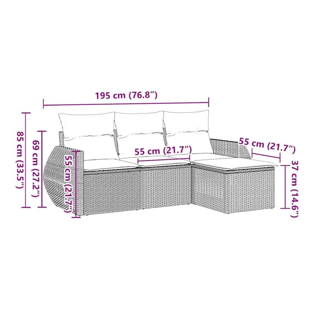 - Dimensions du coussin de dossier : 55 x 45 x 13 cm (L x l x é)