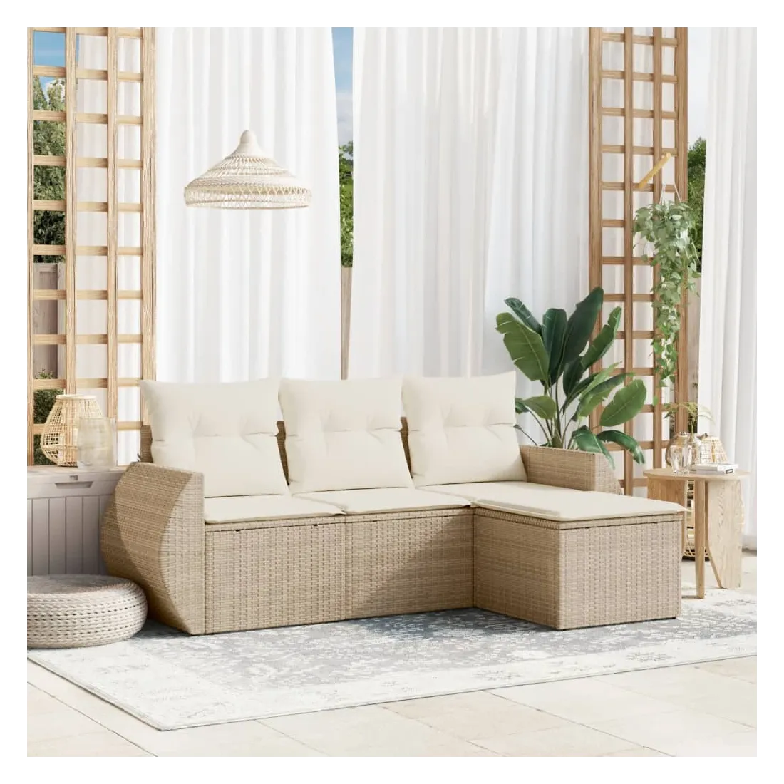 Cet ensemble de canapés de jardin est le complément parfait de votre arrière-cour, terrasse ou patio, offrant un espace confortable et accueillant pour discuter avec la famille et les amis ou simplement se détendre et profiter de l'extérieur. Matériau durable : la résine tressée, également connue sous le nom de poly rotin, est un matériau synthétique solide et nécessitant peu d'entretien qui ressemble au rotin naturel. Il est léger, facile à nettoyer et couramment utilisé pour les meubles d'extérieur en raison de sa durabilité et de ses propriétés de résistance aux intempéries.Fonction de rangement avec sac résistant à l'eau : chaque siège de jardin dispose d'un espace de rangement sous l'assise, complété par un sac résistant à l'eau pour ranger les coussins, les jouets et d'autres objets. Les sacs intérieurs sont dotés d'un couvercle et peuvent être solidement fixés aux sièges à l'aide de bandes auto-agrippantes pour plus de stabilité.Housse amovible et lavable : ces coussins de siège sont dotés de housses amovibles pour un lavage et un entretien faciles.Conception modulaire : cet ensemble de meubles d'extérieur a une conception modulaire, ce qui le rend complètement flexible et facile à déplacer, afin que vous puissiez créer un agencement de meubles d'extérieur personnalisé. Bon à savoir :Pour que vos meubles d'extérieur restent beaux, nous vous recommandons de les protéger avec une housse imperméable.