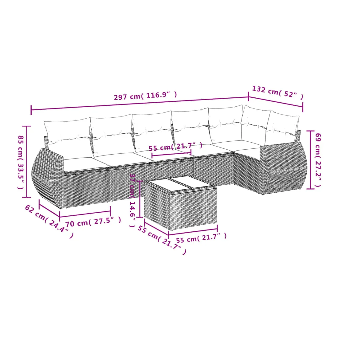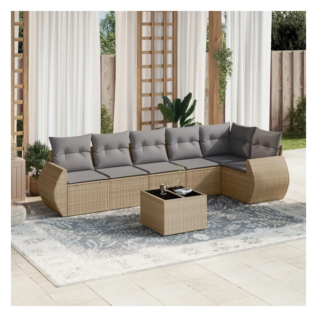 Salon de jardin avec coussins 7 pcs beige résine tressée