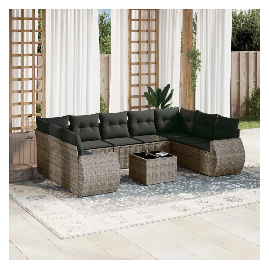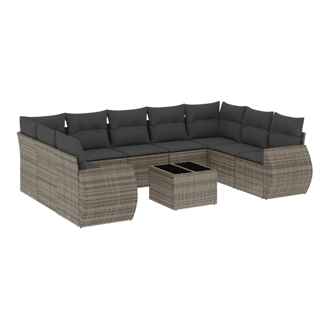 Salon de jardin avec coussins 10 pcs gris résine tressée
