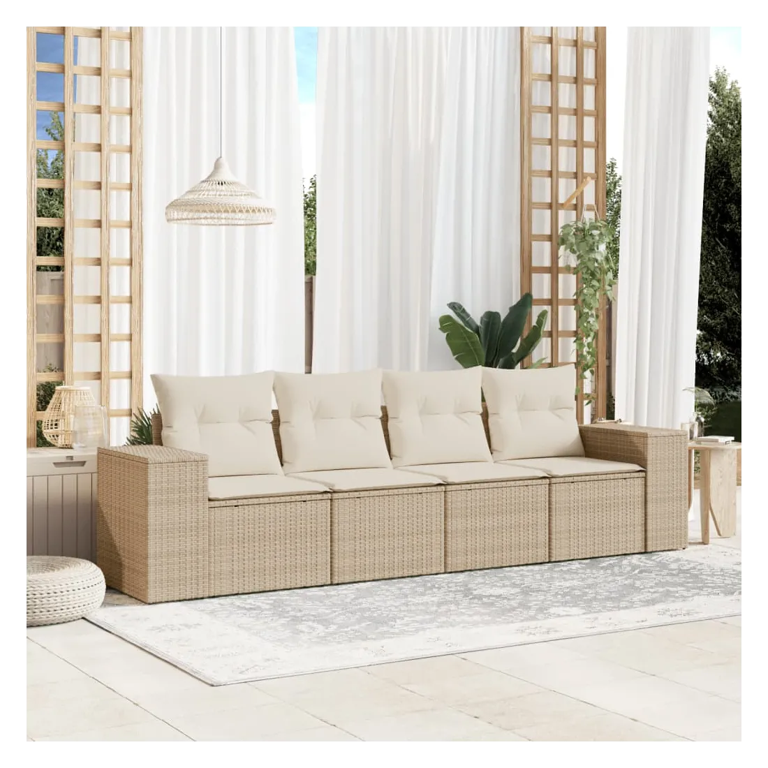 Cet ensemble de canapés de jardin est le complément parfait de votre arrière-cour, terrasse ou patio, offrant un espace confortable et accueillant pour discuter avec la famille et les amis ou simplement se détendre et profiter de l'extérieur. Matériau durable : la résine tressée, également connue sous le nom de poly rotin, est un matériau synthétique solide et nécessitant peu d'entretien qui ressemble au rotin naturel. Il est léger, facile à nettoyer et couramment utilisé pour les meubles d'extérieur en raison de sa durabilité et de ses propriétés de résistance aux intempéries.Fonction de rangement avec sac résistant à l'eau : le mobilier de jardin dispose d'un espace de rangement sous l'assise, complété par un sac résistant à l'eau pour ranger coussins, jouets et autres objets. Le sac intérieur peut être solidement fixé au mobilier d'extérieur grâce à des attaches auto-agrippantes pour plus de stabilité.Housse amovible et lavable : ces coussins de siège sont dotés de housses amovibles pour un lavage et un entretien faciles.Conception modulaire : cet ensemble de meubles d'extérieur a une conception modulaire, ce qui le rend complètement flexible et facile à déplacer, afin que vous puissiez créer un agencement de meubles d'extérieur personnalisé. Bon à savoir :Pour que vos meubles d'extérieur restent beaux, nous vous recommandons de les protéger avec une housse imperméable.
