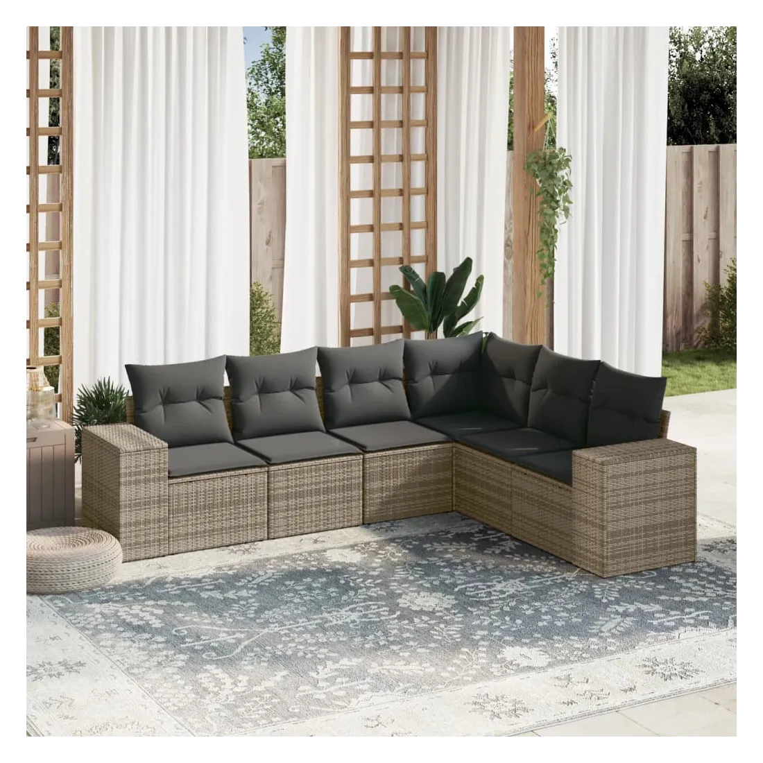 Cet ensemble de canapés de jardin est le complément parfait de votre arrière-cour, terrasse ou patio, offrant un espace confortable et accueillant pour discuter avec la famille et les amis ou simplement se détendre et profiter de l'extérieur. Matériau durable : la résine tressée, également connue sous le nom de poly rotin, est un matériau synthétique solide et nécessitant peu d'entretien qui ressemble au rotin naturel. Il est léger, facile à nettoyer et couramment utilisé pour les meubles d'extérieur en raison de sa durabilité et de ses propriétés de résistance aux intempéries.Fonction de rangement avec sac résistant à l'eau : le mobilier de jardin dispose d'un espace de rangement sous l'assise, complété par un sac résistant à l'eau pour ranger coussins, jouets et autres objets. Le sac intérieur peut être solidement fixé au mobilier d'extérieur grâce à des attaches auto-agrippantes pour plus de stabilité.Housse amovible et lavable : ces coussins de siège sont dotés de housses amovibles pour un lavage et un entretien faciles.Conception modulaire : cet ensemble de meubles d'extérieur a une conception modulaire, ce qui le rend complètement flexible et facile à déplacer, afin que vous puissiez créer un agencement de meubles d'extérieur personnalisé. Bon à savoir :Pour que vos meubles d'extérieur restent beaux, nous vous recommandons de les protéger avec une housse imperméable.