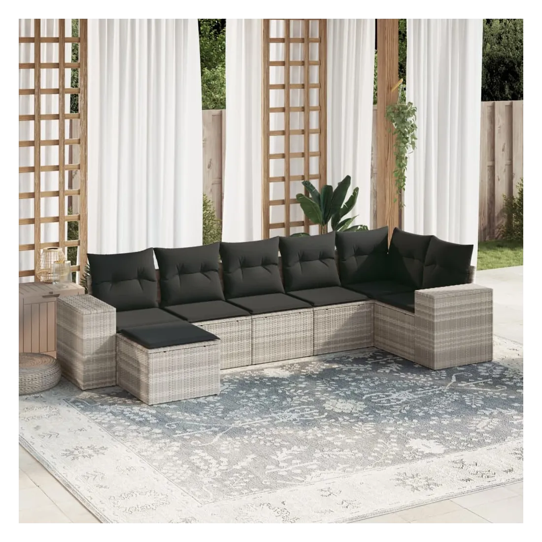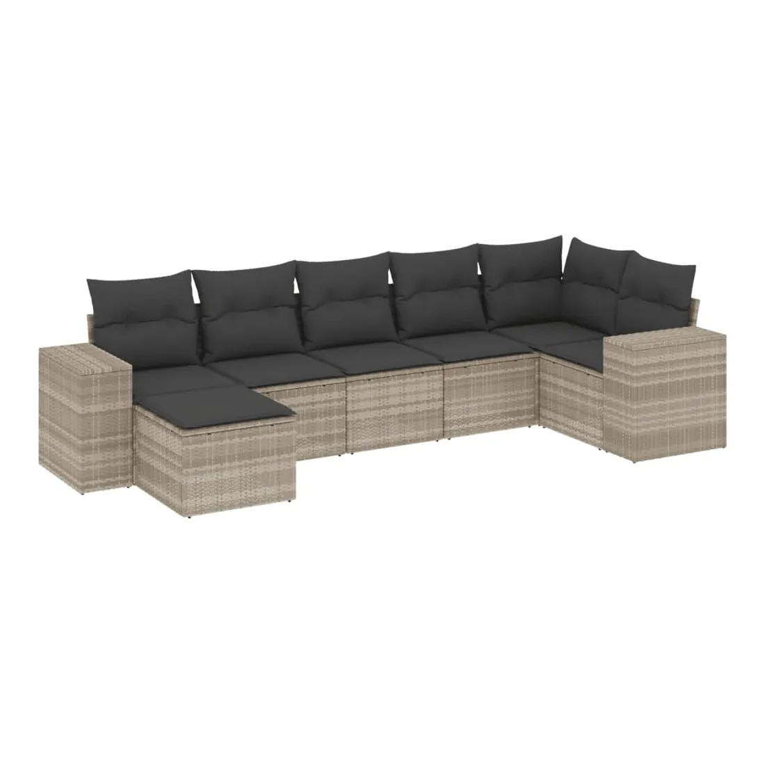 Salon de jardin avec coussins 7 pcs gris clair résine tressée