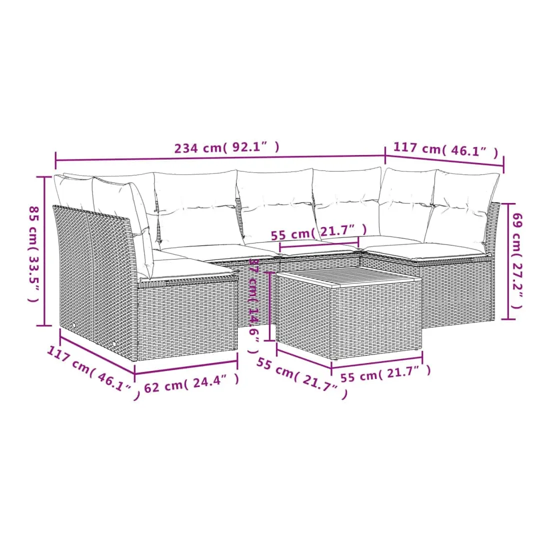 - Dimensions du coussin de siège : 55 x 55 x 3 cm (l x P x é)