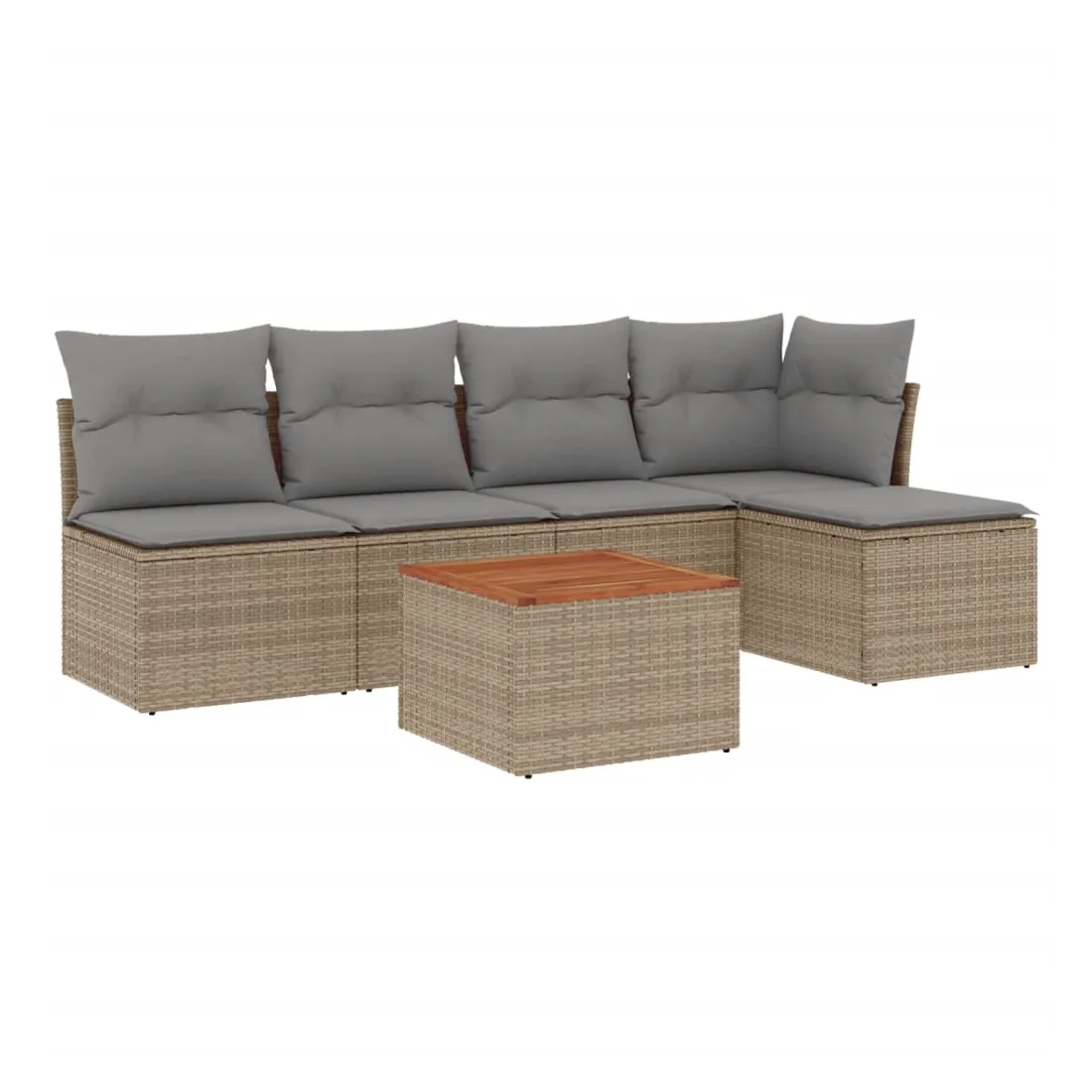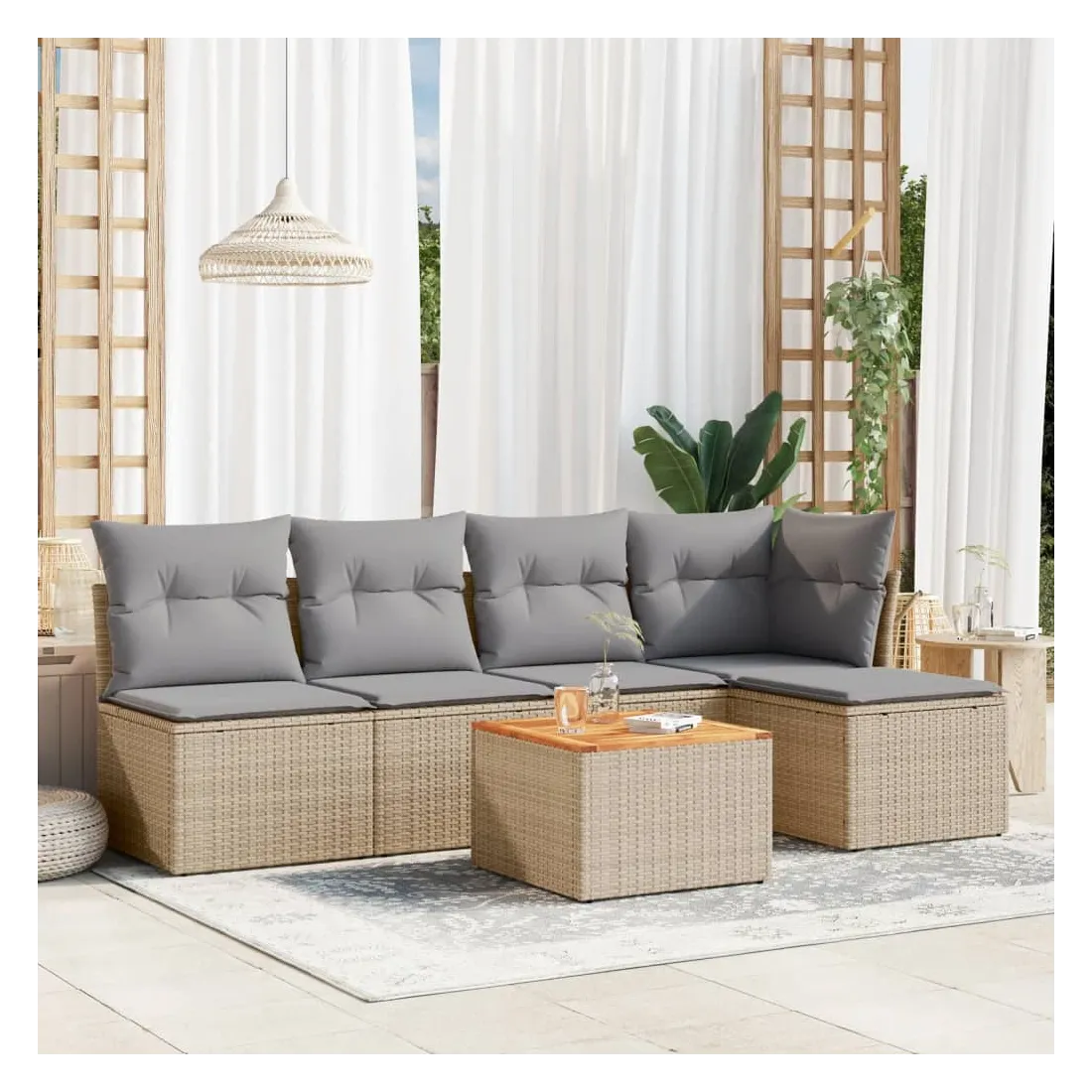 Cet ensemble de canapés de jardin est le complément parfait de votre arrière-cour, terrasse ou patio, offrant un espace confortable et accueillant pour discuter avec la famille et les amis ou simplement se détendre et profiter de l'extérieur. Matériau durable : la résine tressée, également connue sous le nom de poly rotin, est un matériau synthétique solide et nécessitant peu d'entretien qui ressemble au rotin naturel. Il est léger, facile à nettoyer et couramment utilisé pour les meubles d'extérieur en raison de sa durabilité et de ses propriétés de résistance aux intempéries.Fonction de rangement avec sac résistant à l'eau : chaque siège de jardin dispose d'un espace de rangement sous l'assise, complété par un sac résistant à l'eau pour ranger les coussins, les jouets et d'autres objets. Les sacs intérieurs sont dotés d'un couvercle et peuvent être solidement fixés aux sièges à l'aide de bandes auto-agrippantes pour plus de stabilité.Dessus stable et facile à nettoyer : cette table de jardin a un dessus en bois d'acacia robuste, durable et facile à nettoyer avec un chiffon humide.Pouf polyvalent : le tabouret est polyvalent, servant de repose-pieds confortable lorsque vous vous prélassez sur le canapé ou de siège supplémentaire dans votre jardin.Conception modulaire : cet ensemble de meubles d'extérieur a une conception modulaire, ce qui le rend complètement flexible et facile à déplacer, afin que vous puissiez créer un agencement de meubles d'extérieur personnalisé. Bon à savoir :Pour que vos meubles d'extérieur restent beaux, nous vous recommandons de les protéger avec une housse imperméable.