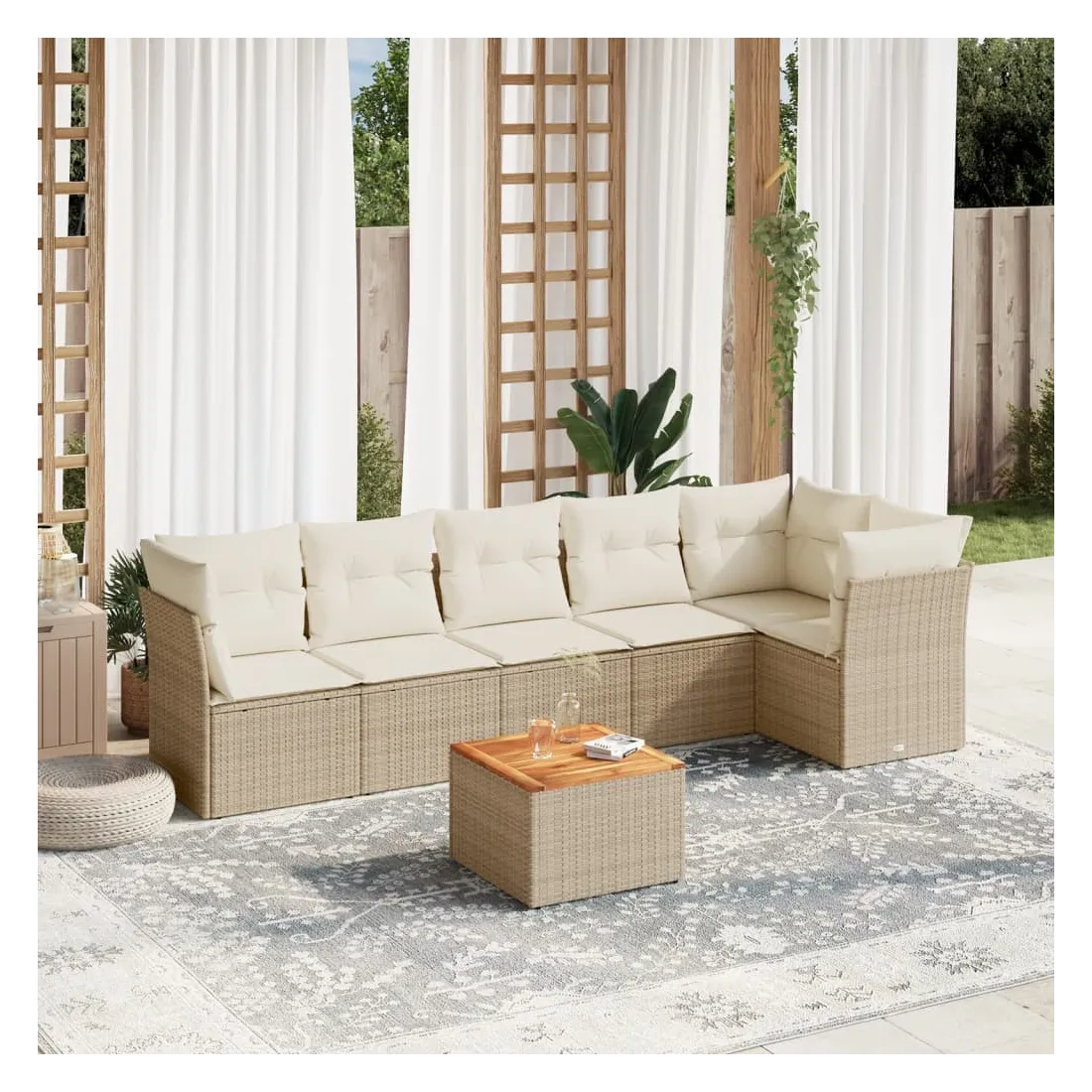 Cet ensemble de canapés de jardin est le complément parfait de votre arrière-cour, terrasse ou patio, offrant un espace confortable et accueillant pour discuter avec la famille et les amis ou simplement se détendre et profiter de l'extérieur. Matériau durable : la résine tressée, également connue sous le nom de poly rotin, est un matériau synthétique solide et nécessitant peu d'entretien qui ressemble au rotin naturel. Il est léger, facile à nettoyer et couramment utilisé pour les meubles d'extérieur en raison de sa durabilité et de ses propriétés de résistance aux intempéries.Fonction de rangement avec sac résistant à l'eau : chaque siège de jardin dispose d'un espace de rangement sous l'assise, complété par un sac résistant à l'eau pour ranger les coussins, les jouets et d'autres objets. Les sacs intérieurs sont dotés d'un couvercle et peuvent être solidement fixés aux sièges à l'aide de bandes auto-agrippantes pour plus de stabilité.Dessus stable et facile à nettoyer : cette table de jardin a un dessus en bois d'acacia robuste, durable et facile à nettoyer avec un chiffon humide.Housse amovible et lavable : ces coussins de siège sont dotés de housses amovibles pour un lavage et un entretien faciles.Conception modulaire : cet ensemble de meubles d'extérieur a une conception modulaire, ce qui le rend complètement flexible et facile à déplacer, afin que vous puissiez créer un agencement de meubles d'extérieur personnalisé. Bon à savoir :Pour que vos meubles d'extérieur restent beaux, nous vous recommandons de les protéger avec une housse imperméable.