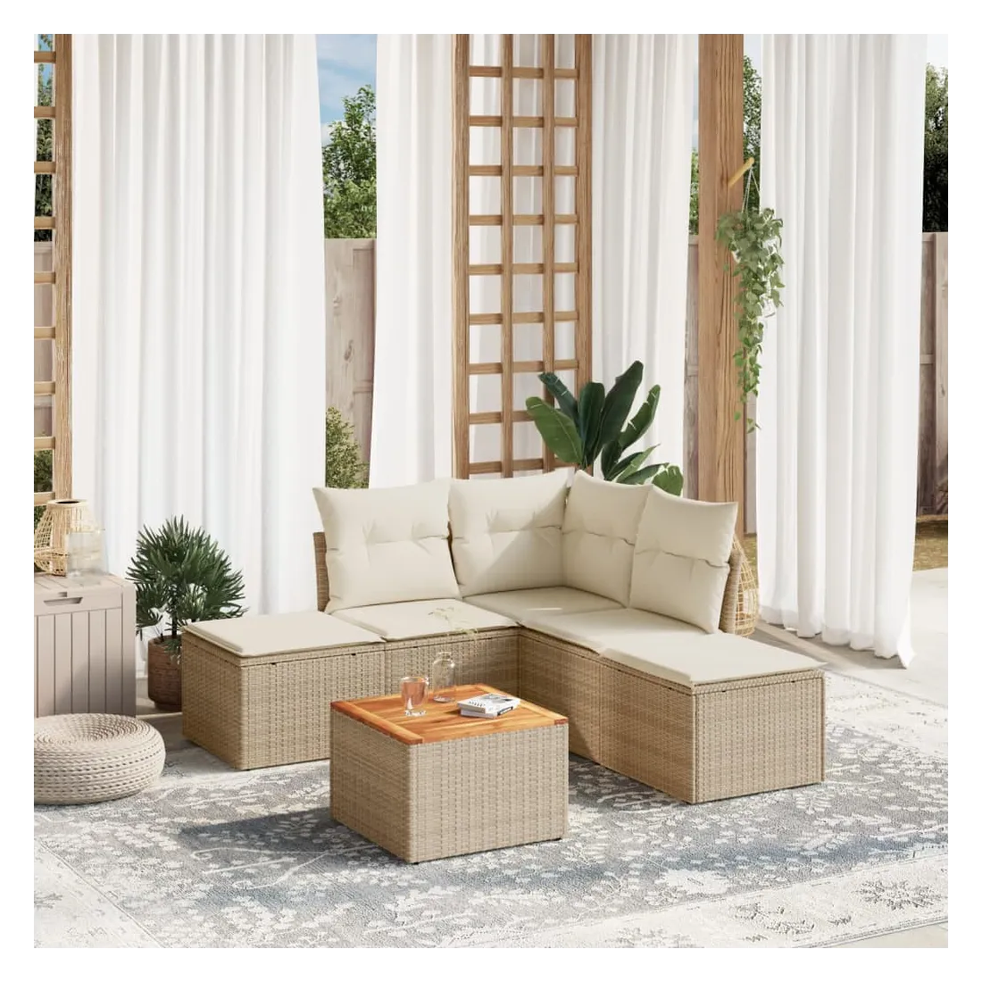 Cet ensemble de canapés de jardin est le complément parfait de votre arrière-cour, terrasse ou patio, offrant un espace confortable et accueillant pour discuter avec la famille et les amis ou simplement se détendre et profiter de l'extérieur. Matériau durable : la résine tressée, également connue sous le nom de poly rotin, est un matériau synthétique solide et nécessitant peu d'entretien qui ressemble au rotin naturel. Il est léger, facile à nettoyer et couramment utilisé pour les meubles d'extérieur en raison de sa durabilité et de ses propriétés de résistance aux intempéries.Fonction de rangement avec sac résistant à l'eau : chaque siège de jardin dispose d'un espace de rangement sous l'assise, complété par un sac résistant à l'eau pour ranger les coussins, les jouets et d'autres objets. Les sacs intérieurs sont dotés d'un couvercle et peuvent être solidement fixés aux sièges à l'aide de bandes auto-agrippantes pour plus de stabilité.Dessus stable et facile à nettoyer : cette table de jardin a un dessus en bois d'acacia robuste, durable et facile à nettoyer avec un chiffon humide.Pouf polyvalent : le tabouret est polyvalent, servant de repose-pieds confortable lorsque vous vous prélassez sur le canapé ou de siège supplémentaire dans votre jardin.Conception modulaire : cet ensemble de meubles d'extérieur a une conception modulaire, ce qui le rend complètement flexible et facile à déplacer, afin que vous puissiez créer un agencement de meubles d'extérieur personnalisé. Bon à savoir :Pour que vos meubles d'extérieur restent beaux, nous vous recommandons de les protéger avec une housse imperméable.