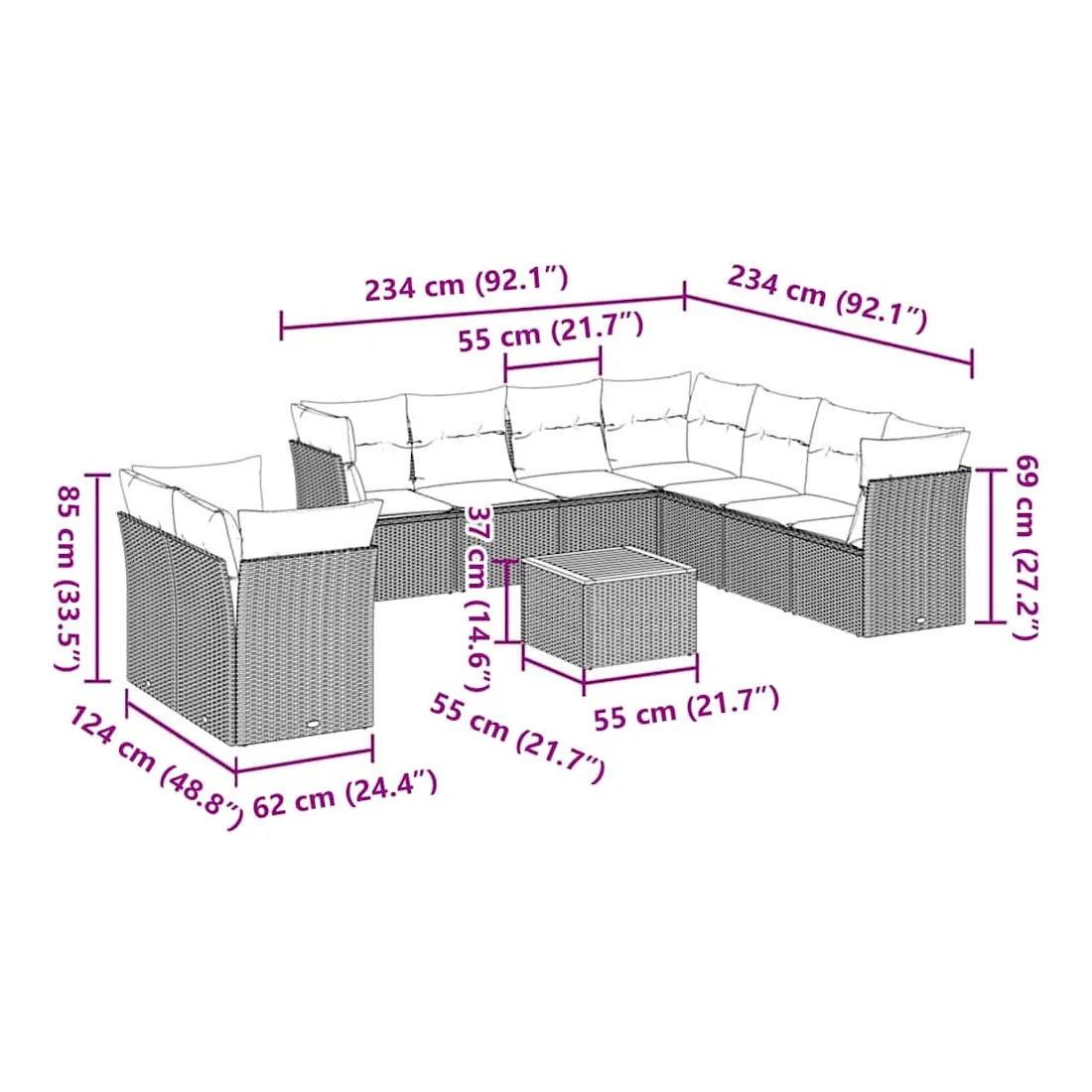 - 9 x coussin de siège avec housse amovible et lavable