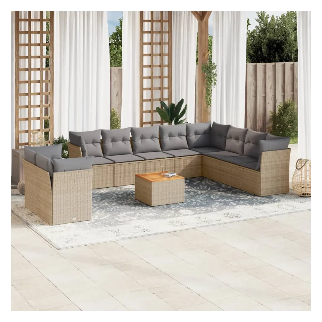 Cet ensemble de canapés de jardin est le complément parfait de votre arrière-cour, terrasse ou patio, offrant un espace confortable et accueillant pour discuter avec la famille et les amis ou simplement se détendre et profiter de l'extérieur. Matériau durable : la résine tressée, également connue sous le nom de poly rotin, est un matériau synthétique solide et nécessitant peu d'entretien qui ressemble au rotin naturel. Il est léger, facile à nettoyer et couramment utilisé pour les meubles d'extérieur en raison de sa durabilité et de ses propriétés de résistance aux intempéries.Fonction de rangement avec sac résistant à l'eau : chaque siège de jardin dispose d'un espace de rangement sous l'assise, complété par un sac résistant à l'eau pour ranger les coussins, les jouets et d'autres objets. Les sacs intérieurs sont dotés d'un couvercle et peuvent être solidement fixés aux sièges à l'aide de bandes auto-agrippantes pour plus de stabilité.Dessus stable et facile à nettoyer : cette table de jardin a un dessus en bois d'acacia robuste, durable et facile à nettoyer avec un chiffon humide.Housse amovible et lavable : ces coussins de siège sont dotés de housses amovibles pour un lavage et un entretien faciles.Conception modulaire : cet ensemble de meubles d'extérieur a une conception modulaire, ce qui le rend complètement flexible et facile à déplacer, afin que vous puissiez créer un agencement de meubles d'extérieur personnalisé. Bon à savoir :Pour que vos meubles d'extérieur restent beaux, nous vous recommandons de les protéger avec une housse imperméable.