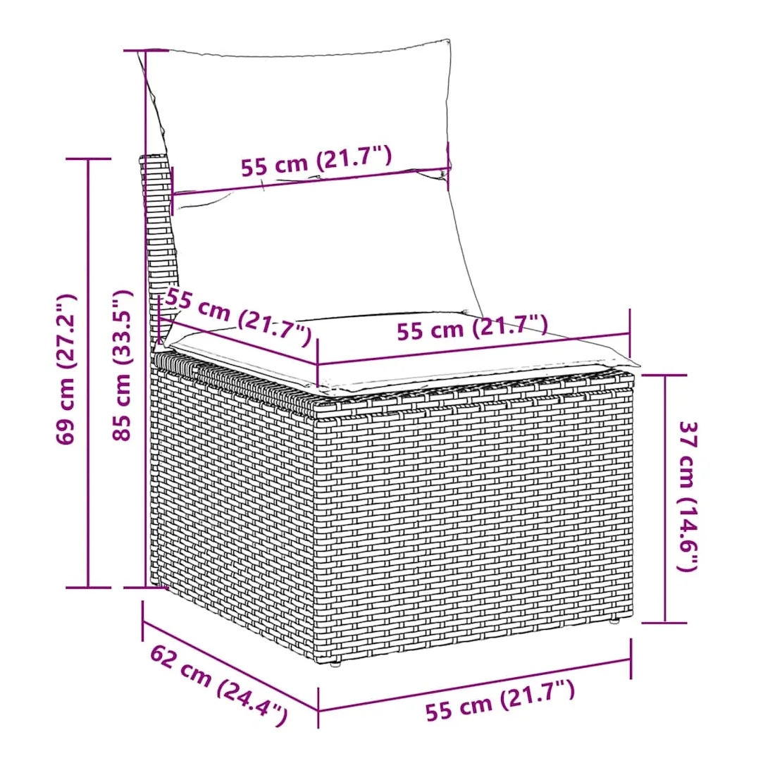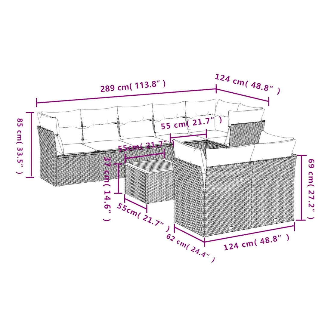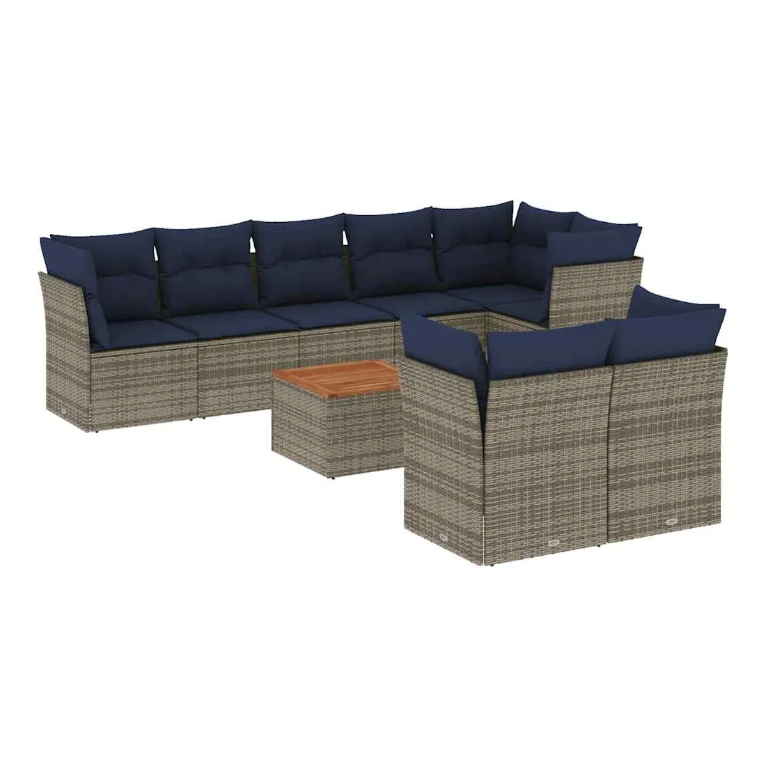 Salon de jardin 9 pcs avec coussins gris résine tressée