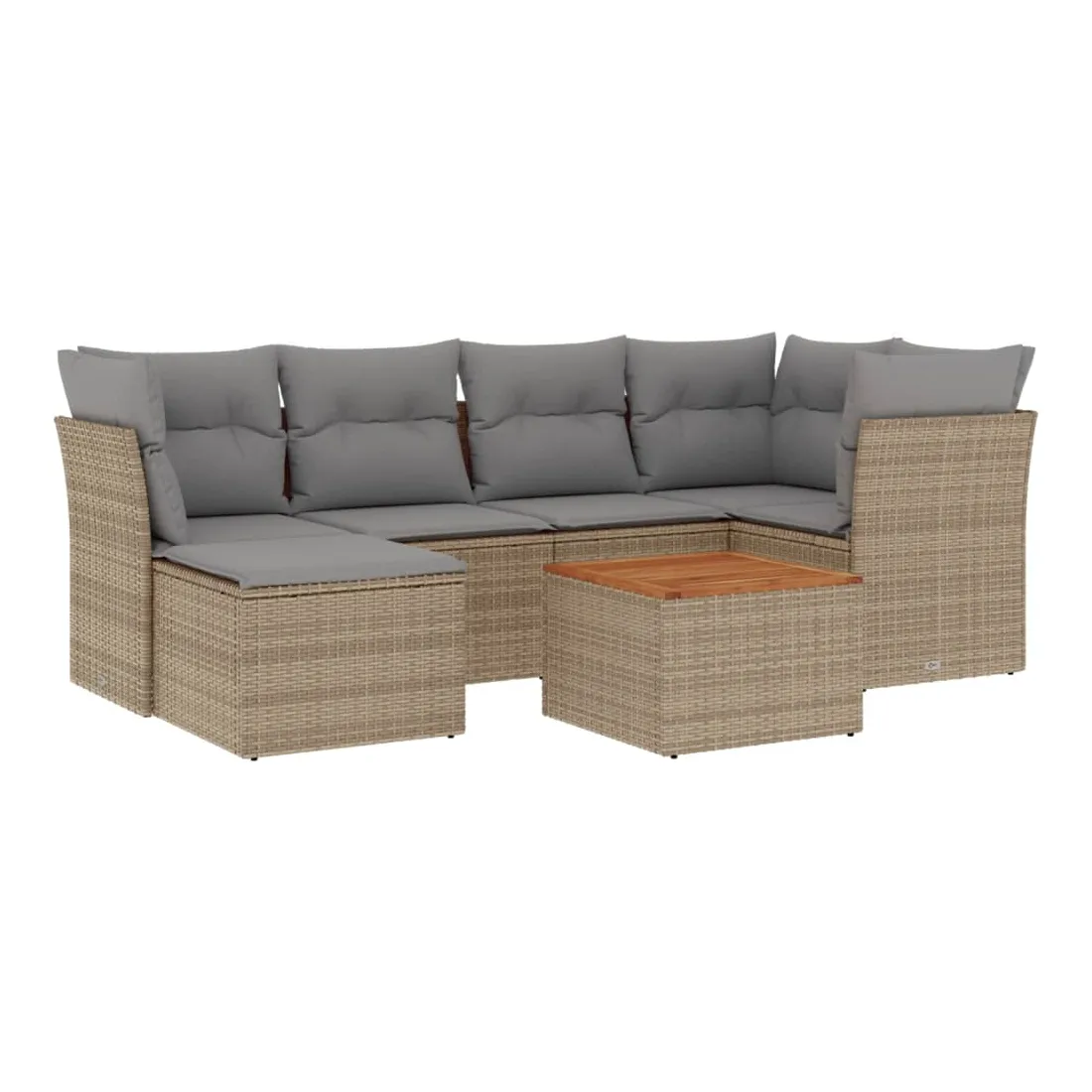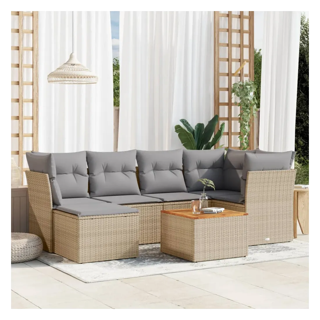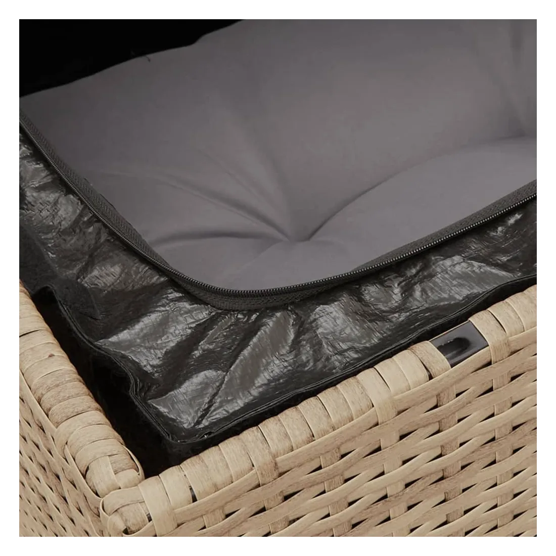 Cet ensemble de canapés de jardin est le complément parfait de votre arrière-cour, terrasse ou patio, offrant un espace confortable et accueillant pour discuter avec la famille et les amis ou simplement se détendre et profiter de l'extérieur. Matériau durable : la résine tressée, également connue sous le nom de poly rotin, est un matériau synthétique solide et nécessitant peu d'entretien qui ressemble au rotin naturel. Il est léger, facile à nettoyer et couramment utilisé pour les meubles d'extérieur en raison de sa durabilité et de ses propriétés de résistance aux intempéries.Fonction de rangement avec sac résistant à l'eau : chaque siège de jardin dispose d'un espace de rangement sous l'assise, complété par un sac résistant à l'eau pour ranger les coussins, les jouets et d'autres objets. Les sacs intérieurs sont dotés d'un couvercle et peuvent être solidement fixés aux sièges à l'aide de bandes auto-agrippantes pour plus de stabilité.Dessus stable et facile à nettoyer : cette table de jardin a un dessus en bois d'acacia robuste, durable et facile à nettoyer avec un chiffon humide.Pouf polyvalent : le tabouret est polyvalent, servant de repose-pieds confortable lorsque vous vous prélassez sur le canapé ou de siège supplémentaire dans votre jardin.Conception modulaire : cet ensemble de meubles d'extérieur a une conception modulaire, ce qui le rend complètement flexible et facile à déplacer, afin que vous puissiez créer un agencement de meubles d'extérieur personnalisé. Bon à savoir :Pour que vos meubles d'extérieur restent beaux, nous vous recommandons de les protéger avec une housse imperméable.