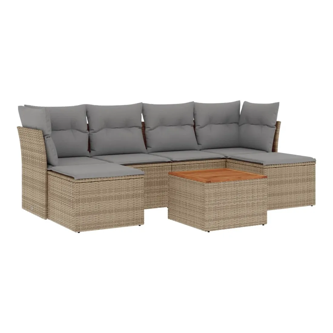 Cet ensemble de canapés de jardin est le complément parfait de votre arrière-cour, terrasse ou patio, offrant un espace confortable et accueillant pour discuter avec la famille et les amis ou simplement se détendre et profiter de l'extérieur. Matériau durable : la résine tressée, également connue sous le nom de poly rotin, est un matériau synthétique solide et nécessitant peu d'entretien qui ressemble au rotin naturel. Il est léger, facile à nettoyer et couramment utilisé pour les meubles d'extérieur en raison de sa durabilité et de ses propriétés de résistance aux intempéries.Fonction de rangement avec sac résistant à l'eau : chaque siège de jardin dispose d'un espace de rangement sous l'assise, complété par un sac résistant à l'eau pour ranger les coussins, les jouets et d'autres objets. Les sacs intérieurs sont dotés d'un couvercle et peuvent être solidement fixés aux sièges à l'aide de bandes auto-agrippantes pour plus de stabilité.Dessus stable et facile à nettoyer : cette table de jardin a un dessus en bois d'acacia robuste, durable et facile à nettoyer avec un chiffon humide.Pouf polyvalent : le tabouret est polyvalent, servant de repose-pieds confortable lorsque vous vous prélassez sur le canapé ou de siège supplémentaire dans votre jardin.Conception modulaire : cet ensemble de meubles d'extérieur a une conception modulaire, ce qui le rend complètement flexible et facile à déplacer, afin que vous puissiez créer un agencement de meubles d'extérieur personnalisé. Bon à savoir :Pour que vos meubles d'extérieur restent beaux, nous vous recommandons de les protéger avec une housse imperméable.