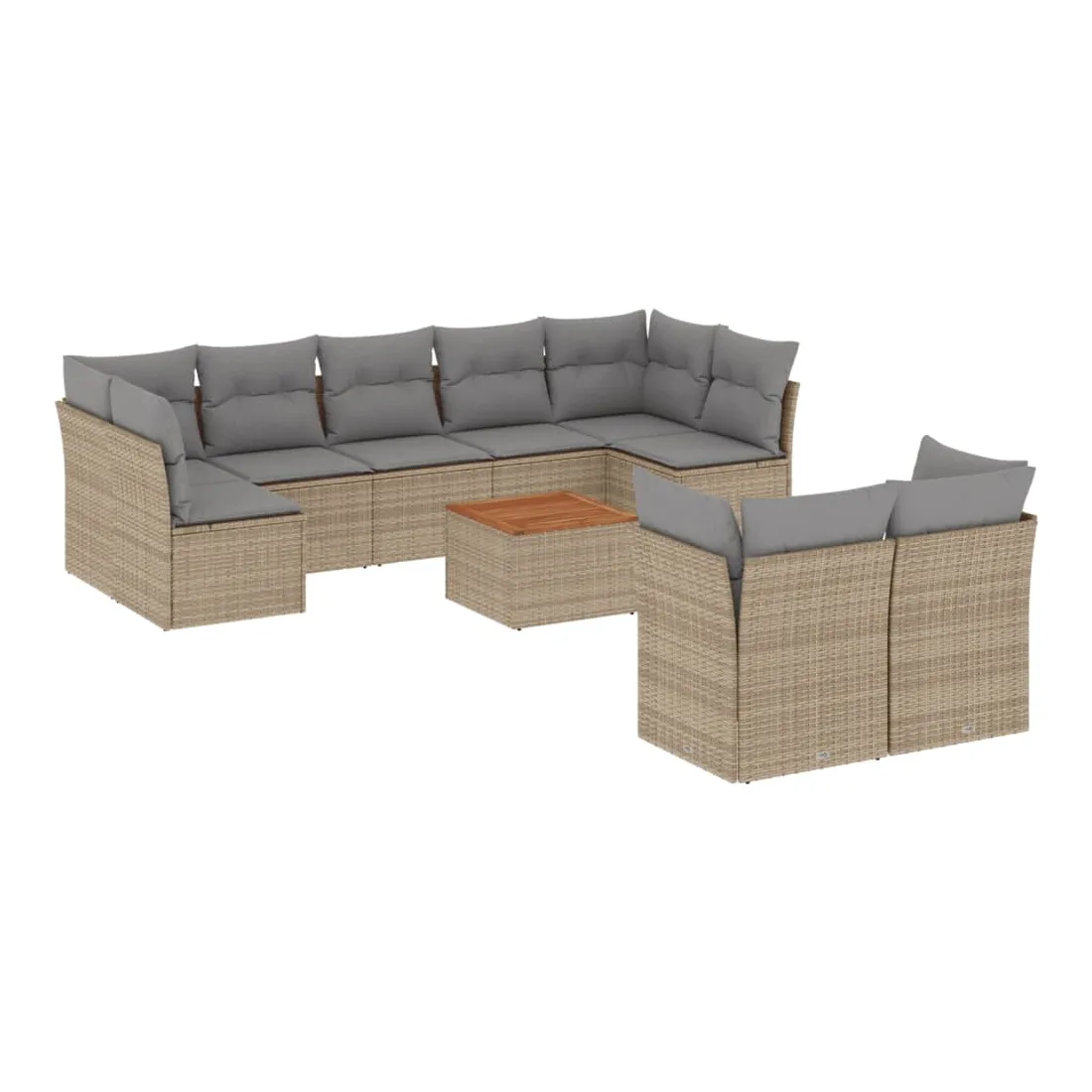 Salon de jardin et coussins 10 pcs mélange beige résine tressée